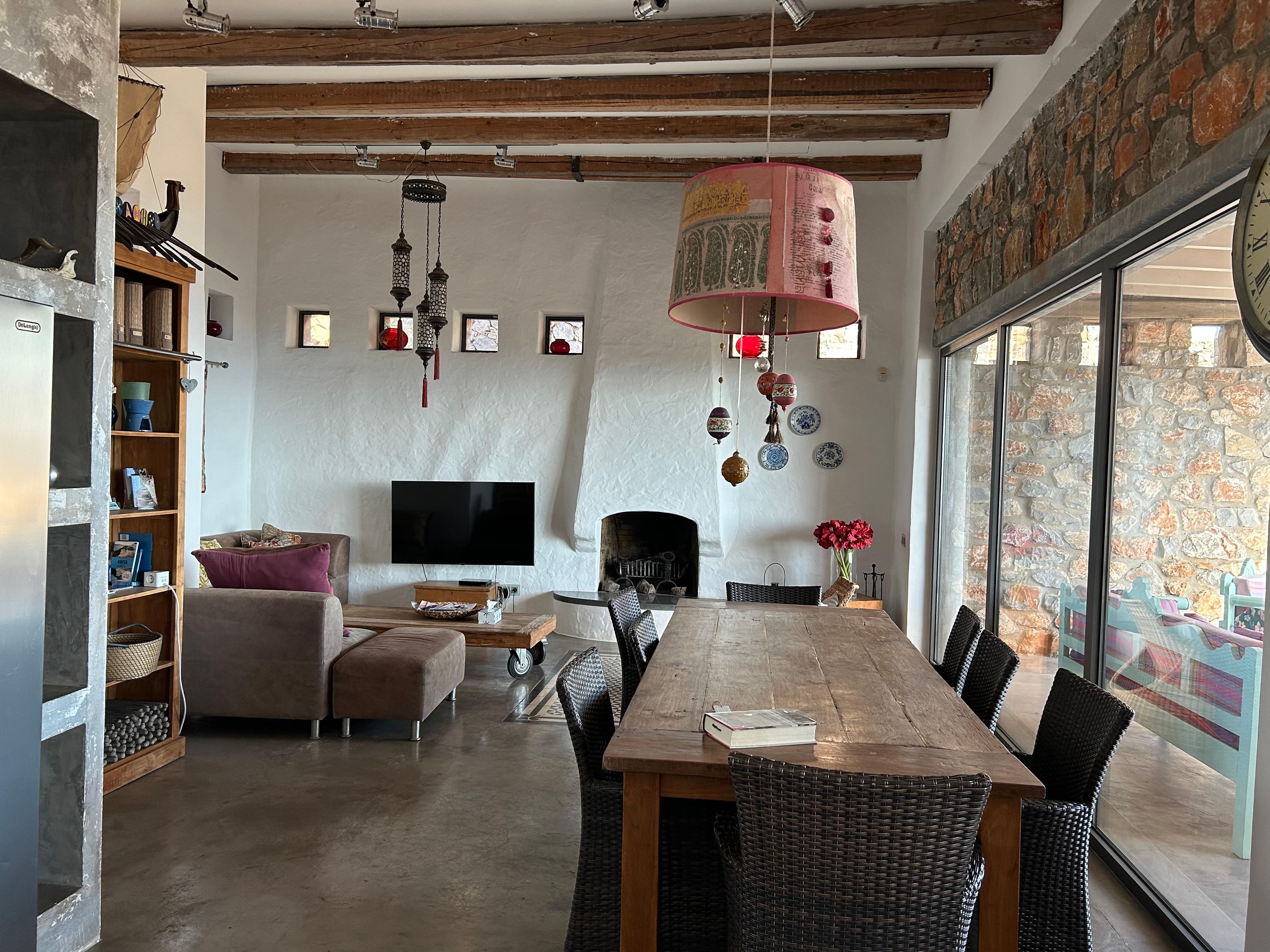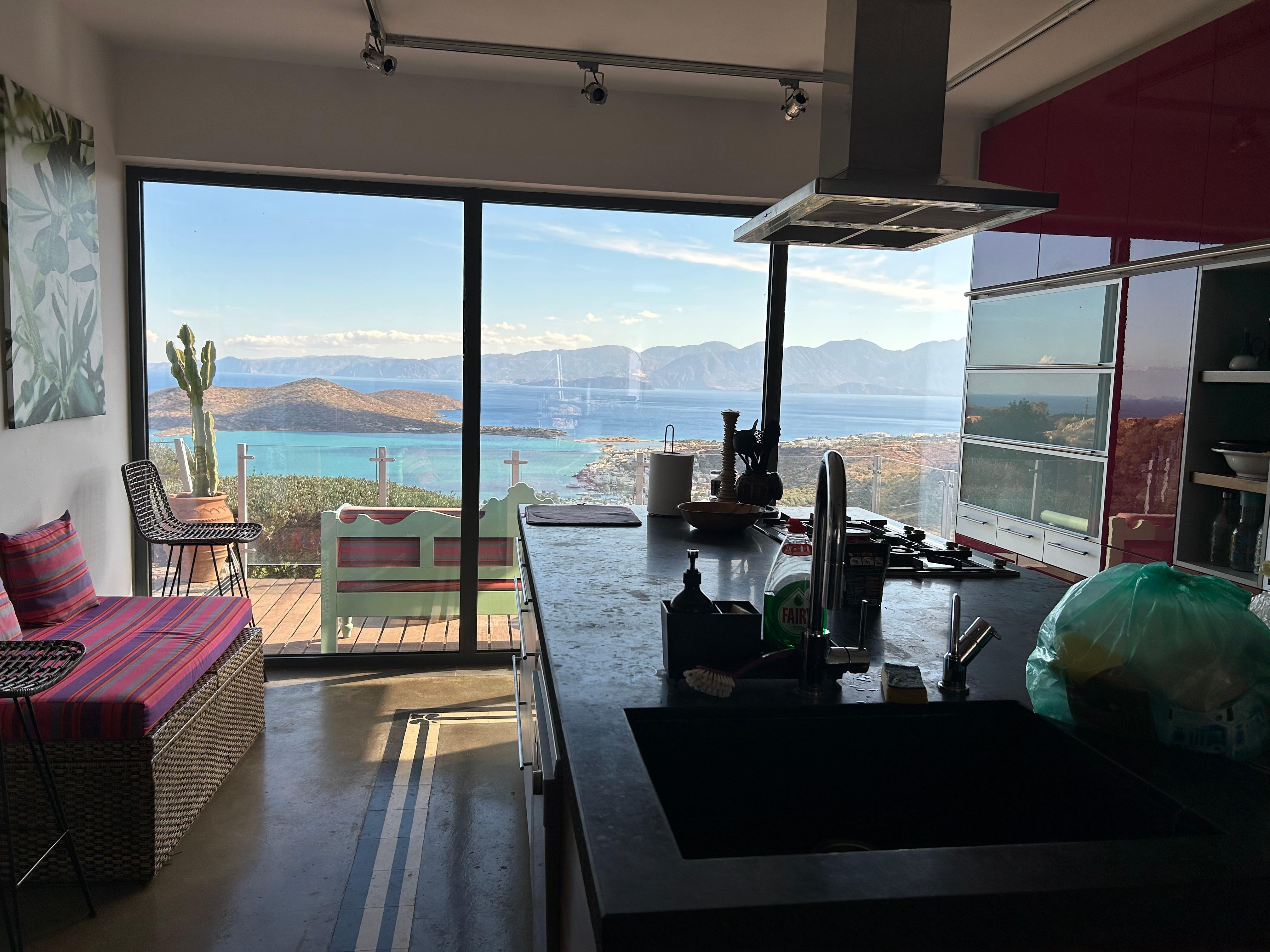 This unique, original three bedroom villa, designed in collaboration with a Greek architect, has a very authentic style and is built into the mountainside. The villa lies at 170 meters above sea level and offers mesmerising views over the Elounda bay, surrounding villages and the Cretan mountains.