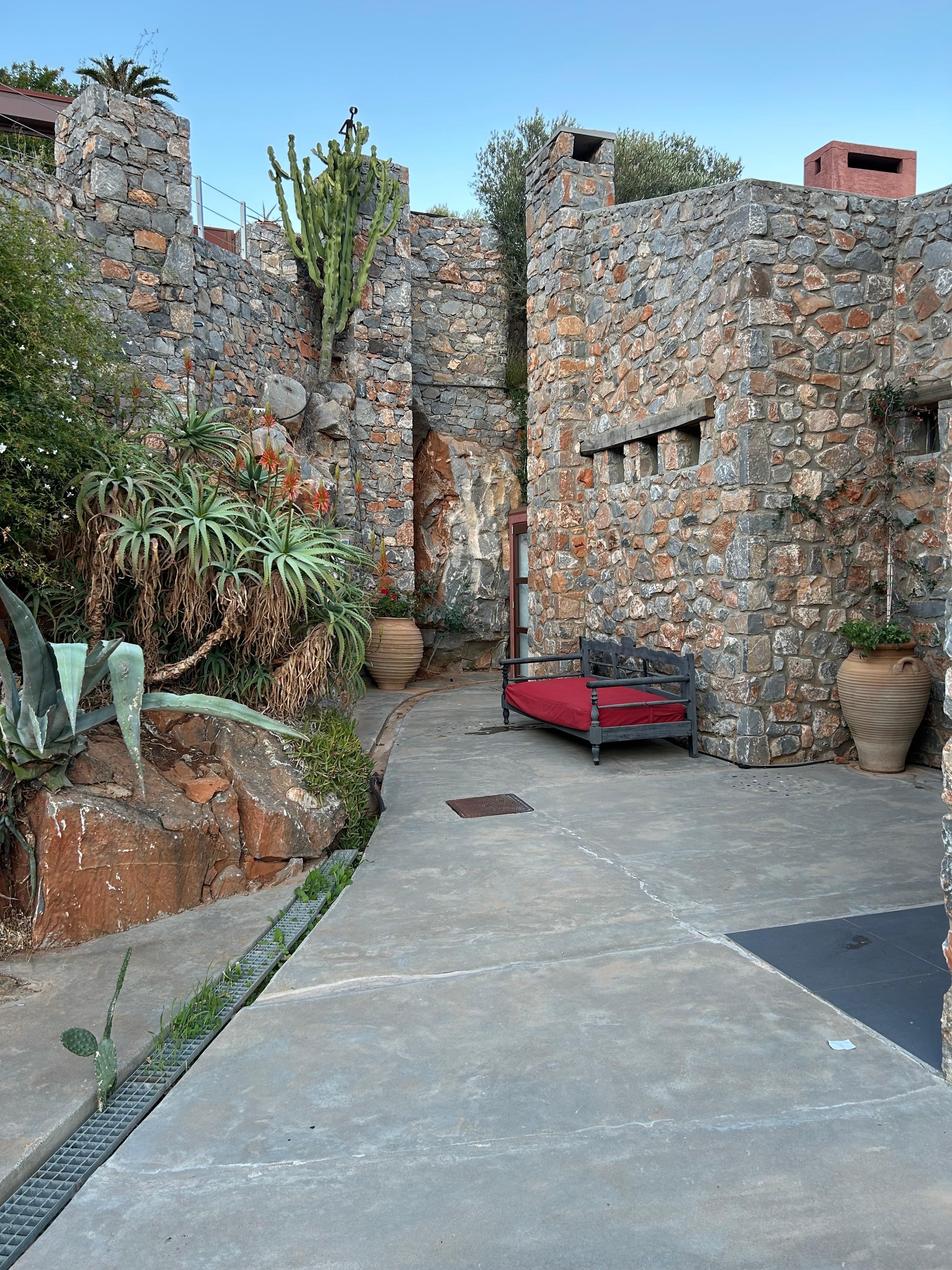 If you are a group larger than 6 adults, there is the possibility to rent the luxurious extension of the villa in addition to the villa. The extension is located next to the downstairs bedrooms and consists of a 50m2 bedroom/lounge area that sleeps up to four people and has a large bathroom with two separate showers and toilets. Imagine showering underneath the original rock wall of the mountain that the villa was built into! (see extra charge for the luxurious extension of the villa at the top of this description)