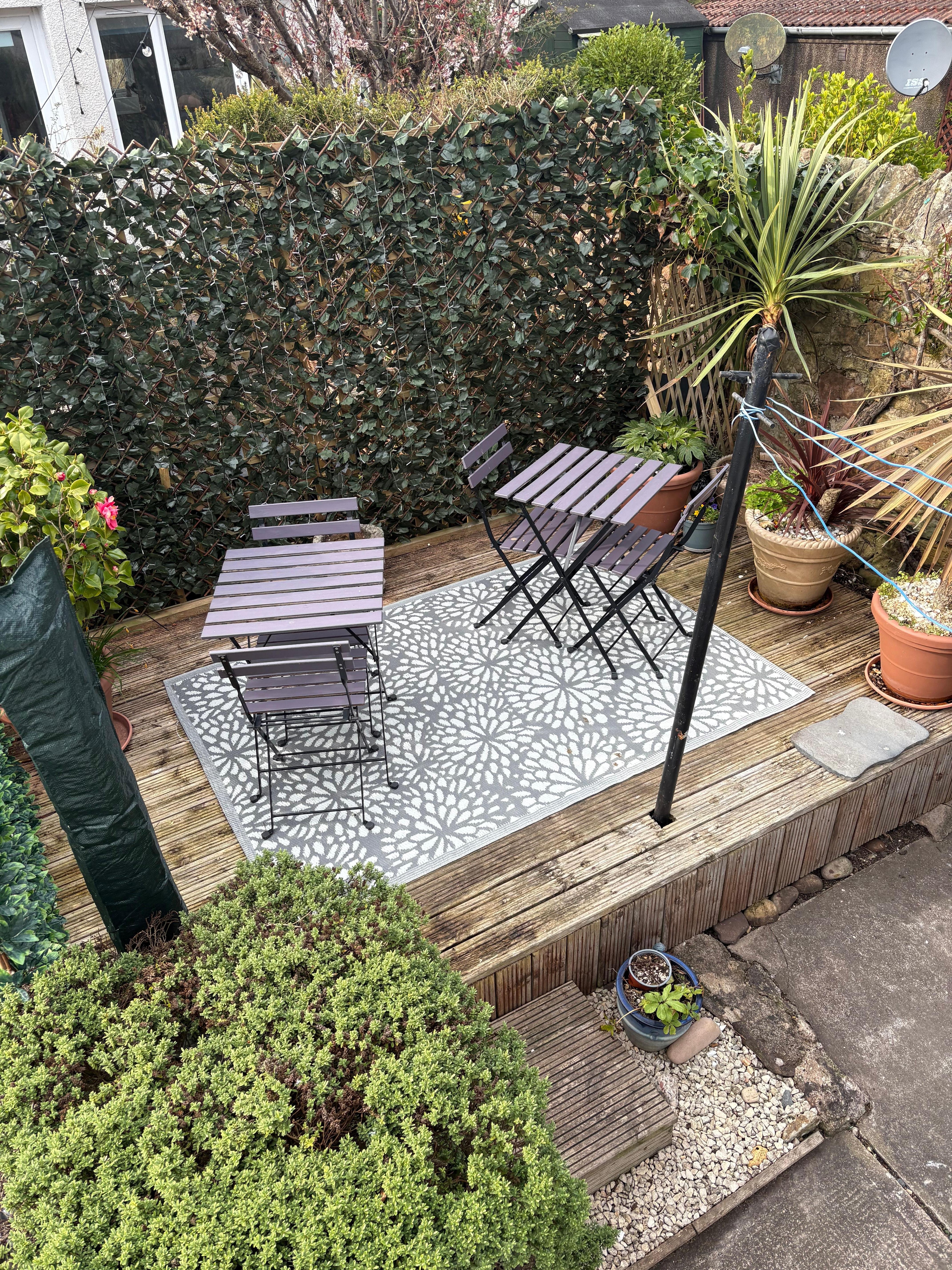 Ground Floor – Bedroom with 1 double bed, wardrobe and storage space. Fully equipped kitchen with seating area and washing machine. Family bathroom with WC and walk-in shower. Open plan living room/dining area. First Floor accessed by a steep and narrow staircase – 1 bedroom with double bed and ample storage, a second bedroom with 2 single beds and storage. Decked patio area with garden furniture. Guests will have full access to the entire property. No rooms will be off limits and all contents within the flat are there for our guests use including wifi, the TV and the cooking implements. Smoking is not permitted within the property. Please note this property only allows 1 pet.