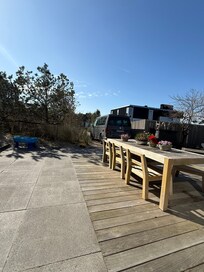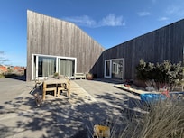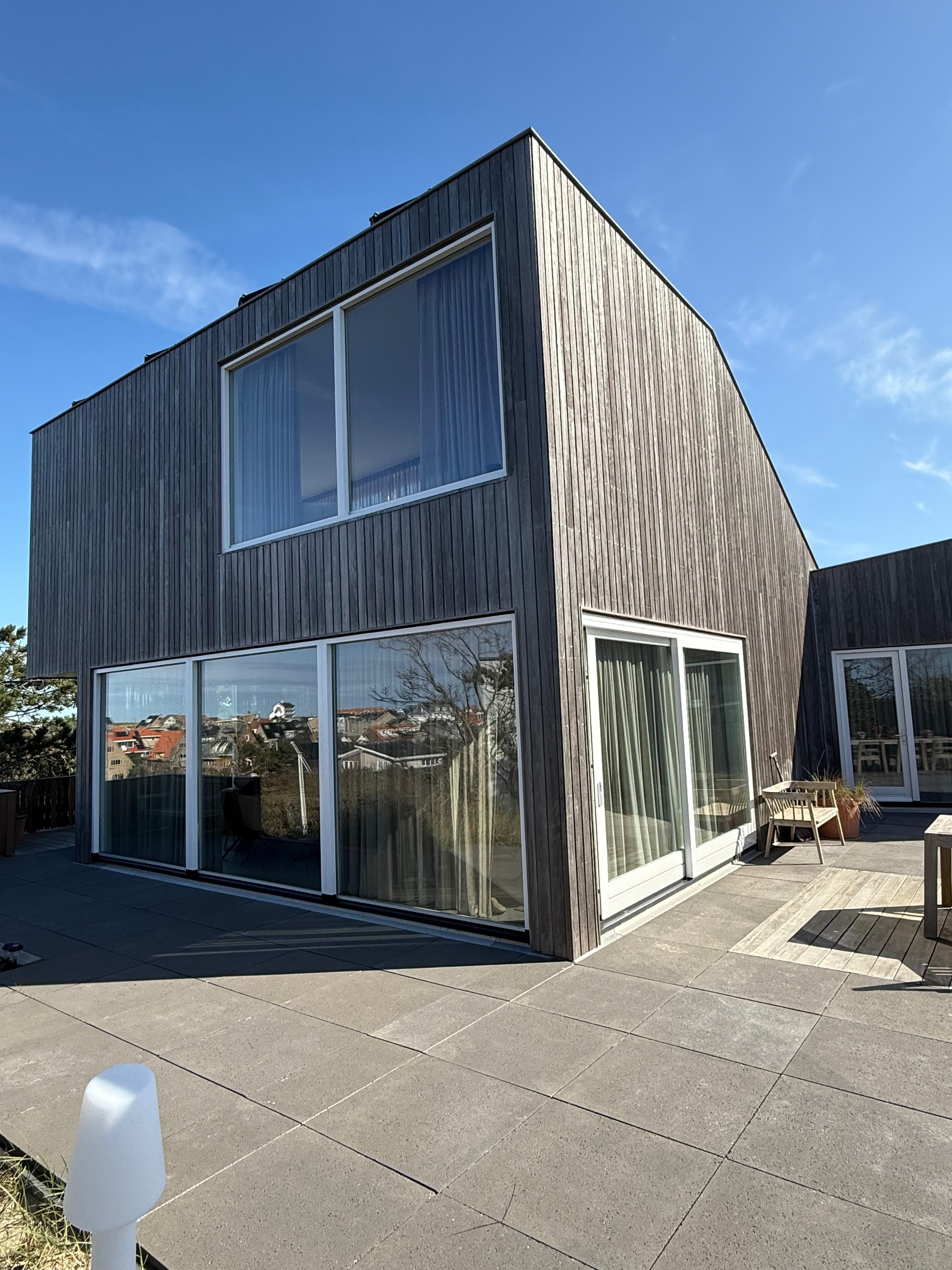 Das moderne und architektonisch schöne Haus war super! Der Besitzer hat uns selbst empfangen und alles erklärt. Die Küche ist voll ausgestattet, Gewürze, Essig und Öl waren vorhanden, im Kühlschrank erwarteten uns ein paar Dosen alkoholfreies Bier. Für Kleinkinder (hatten wir nicht) war Spielzeug da und draussen ein großer Sandkasten. Ein großer Aussenbereich bot viel Platz zum Sitzen, auch im 1.Stock - an dem schönen Studioartigen Wohnbereich war noch eine große Dachterrasse mit bequemen Aussenmöbeln. Meerblick vom Studio aus. Fussweg zum Strand 7 Minuten. Kamin war nicht vorhanden aber ein grosser Grill draussen. Abschließend: wir haben uns sehr wohl gefühlt, alles war perfekt!