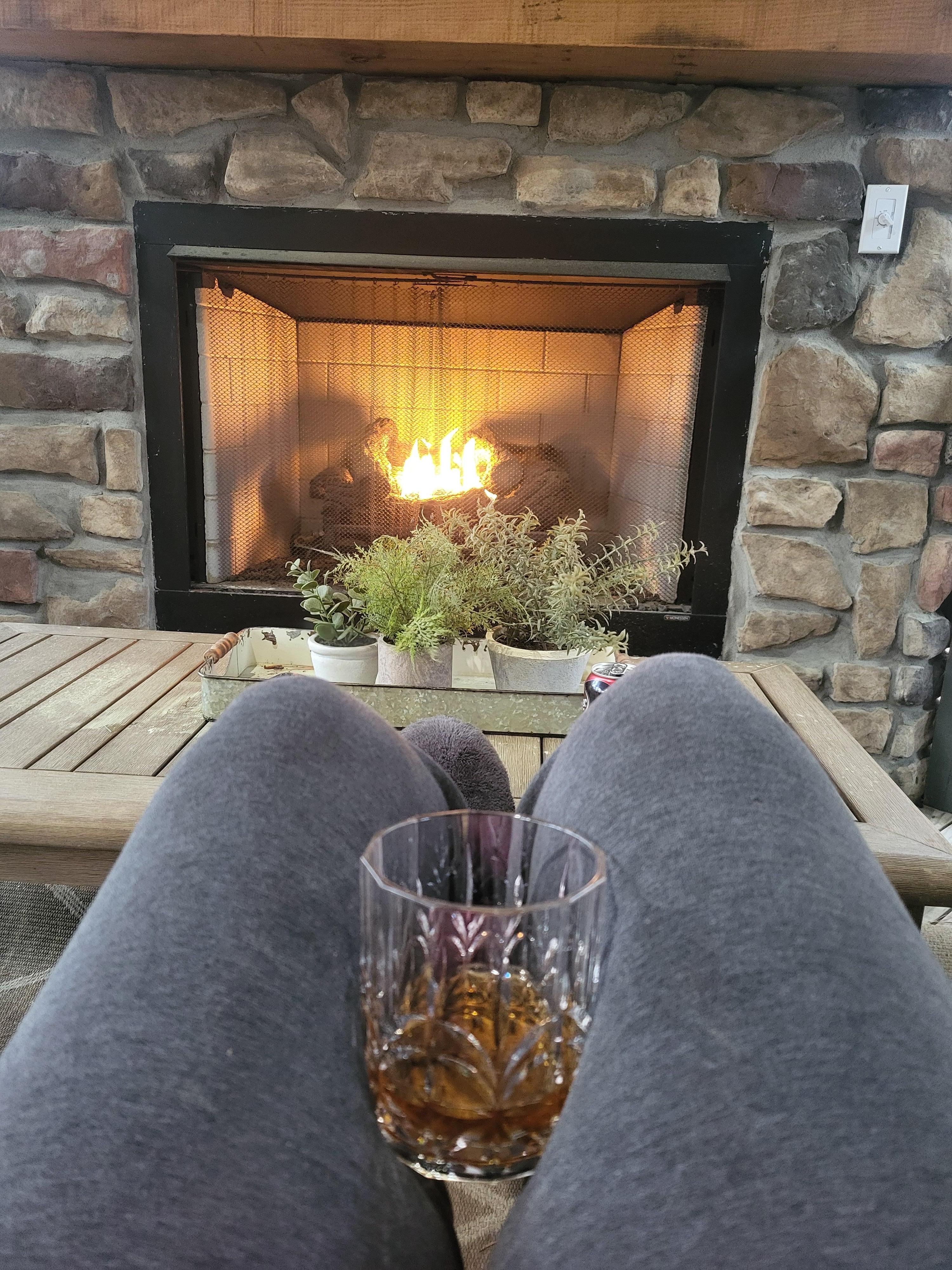 Gas Fireplace indoors and on porch