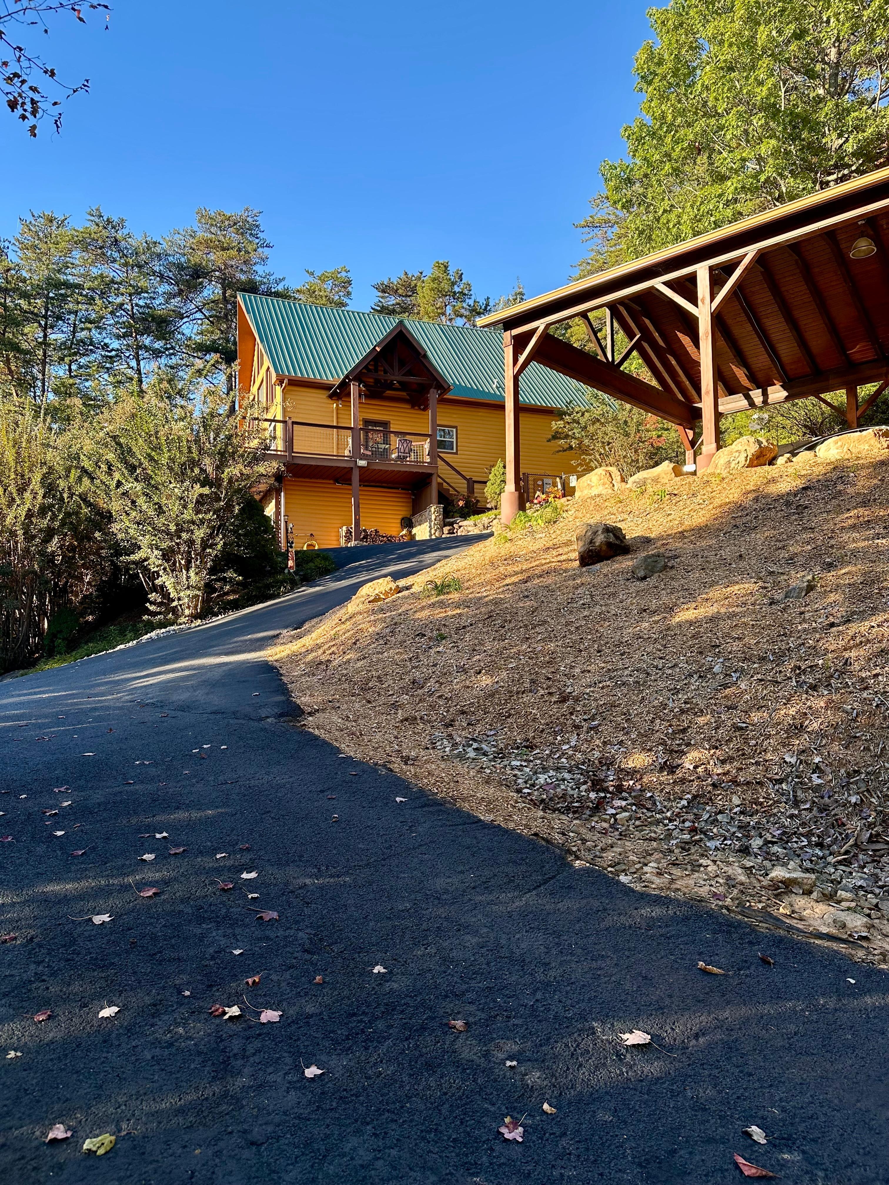 Due to the incline of our driveway and the steep slope we ask all larger vehicles park at the end of the second driveway on a flatter portion of our property.