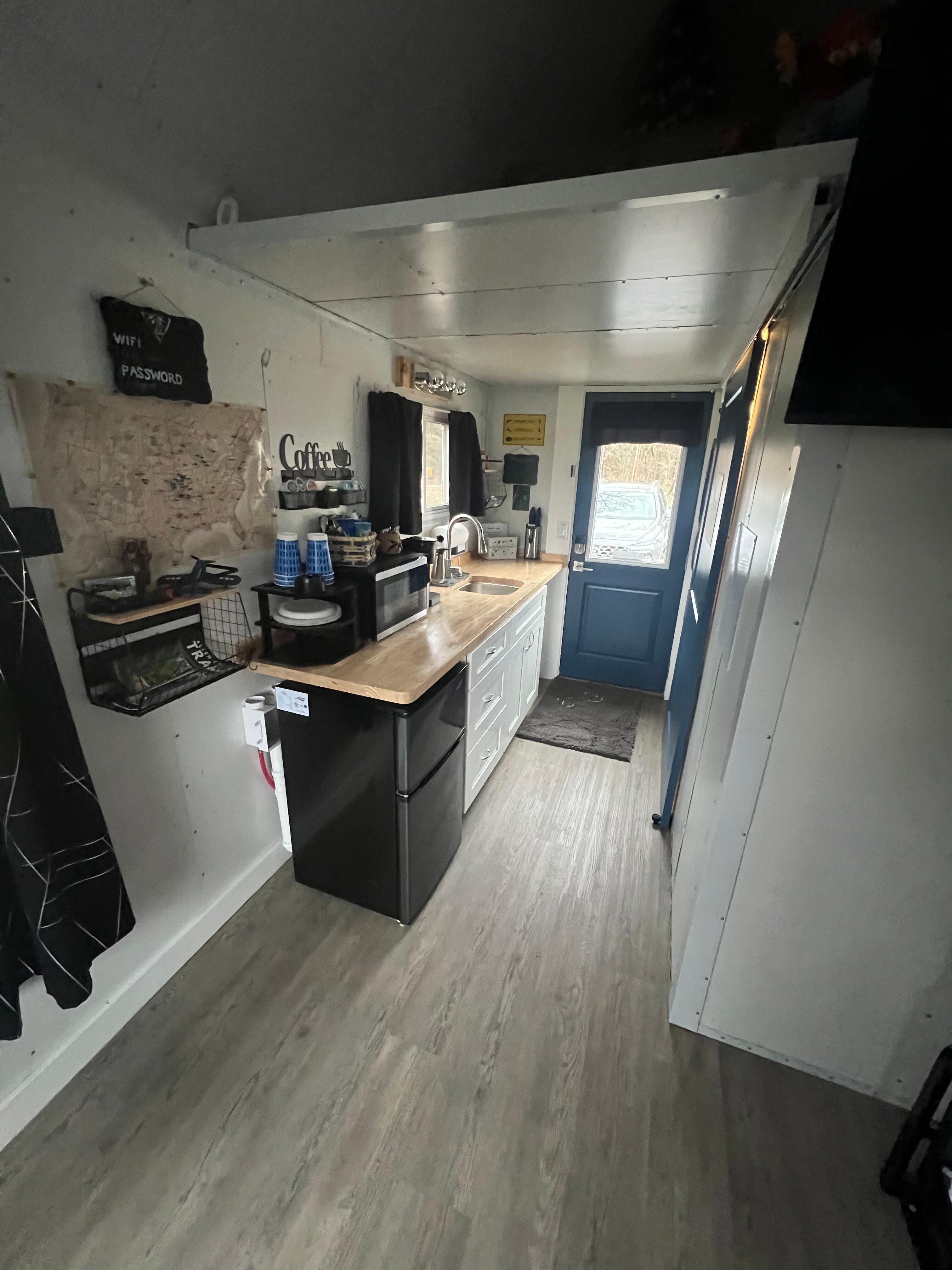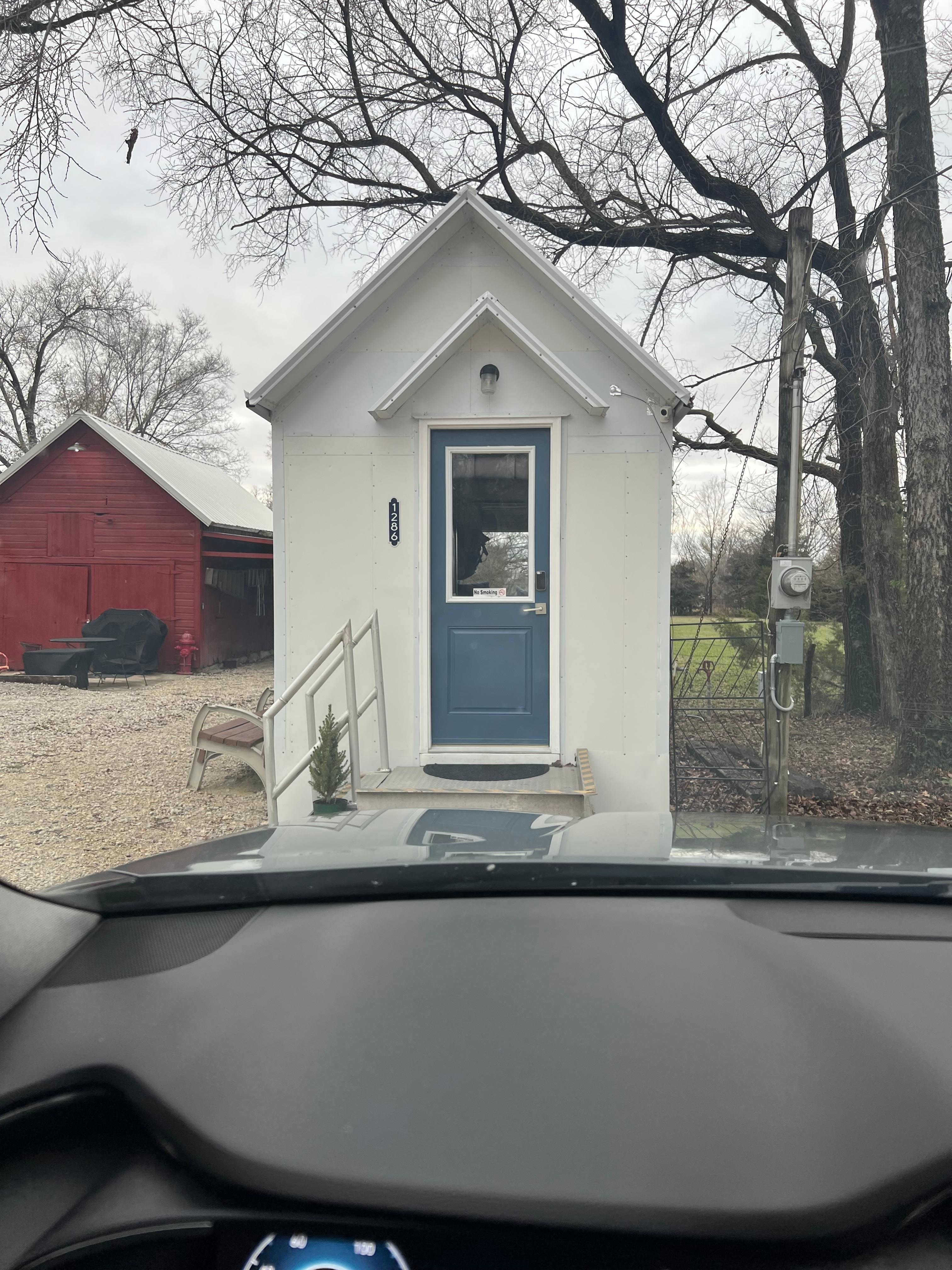 Your cozy cabin retreat awaits. This 1-bedroom gem is equipped with all the essentials for a comfortable stay, including WiFi, heating, and AC. Unwind on the queen-sized memory foam mattress and enjoy a restful night's sleep in a peaceful setting. The property features a spacious parking area, perfect for maneuvering a trailer within the private circular drive. This brand-new home is constructed from steel insulated panels, ensuring comfort and durability. Nestled on a tranquil 1.6-acre property, you'll enjoy the peaceful surroundings featuring a rustic red barn and ample space for your pets to roam freely. Prepare for a relaxing getaway in this cozy haven!