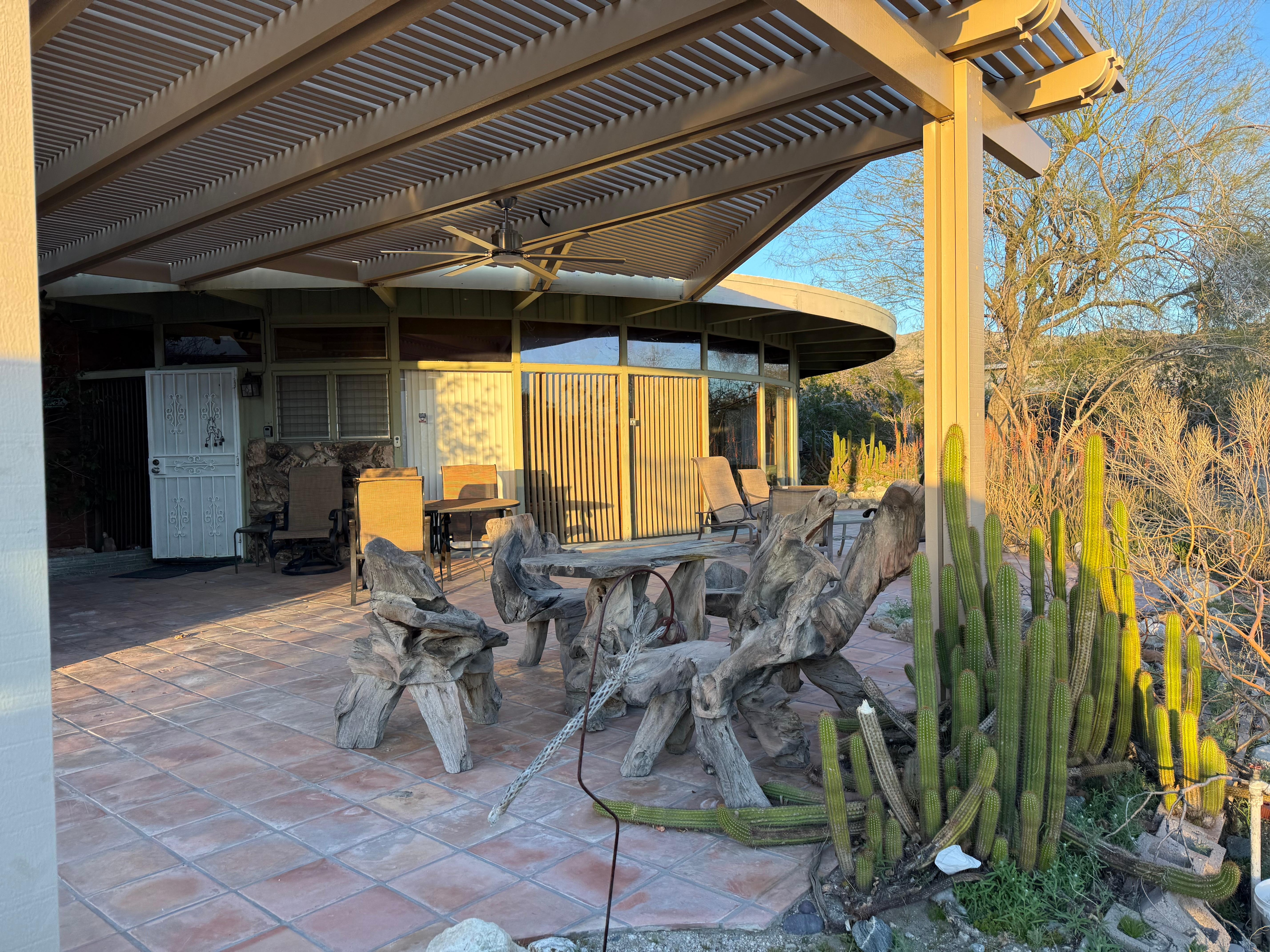 Two large patios, barbecue, park like setting. 5 blocks to nearest hot springs. 5 minutes to a fitness center, 15 minutes to Palm Springs, 5 minutes to the famous Cabot Yerxes Lodge Museum, 45 minutes to Joshua Tree, 15 minutes to Bob Hope Casino, 35 minutes to the Outlets, 2 minutes to Golf course, 2 minutes to walking trails. 20 minutes to Pappy and Harriots in Pioneer Town.