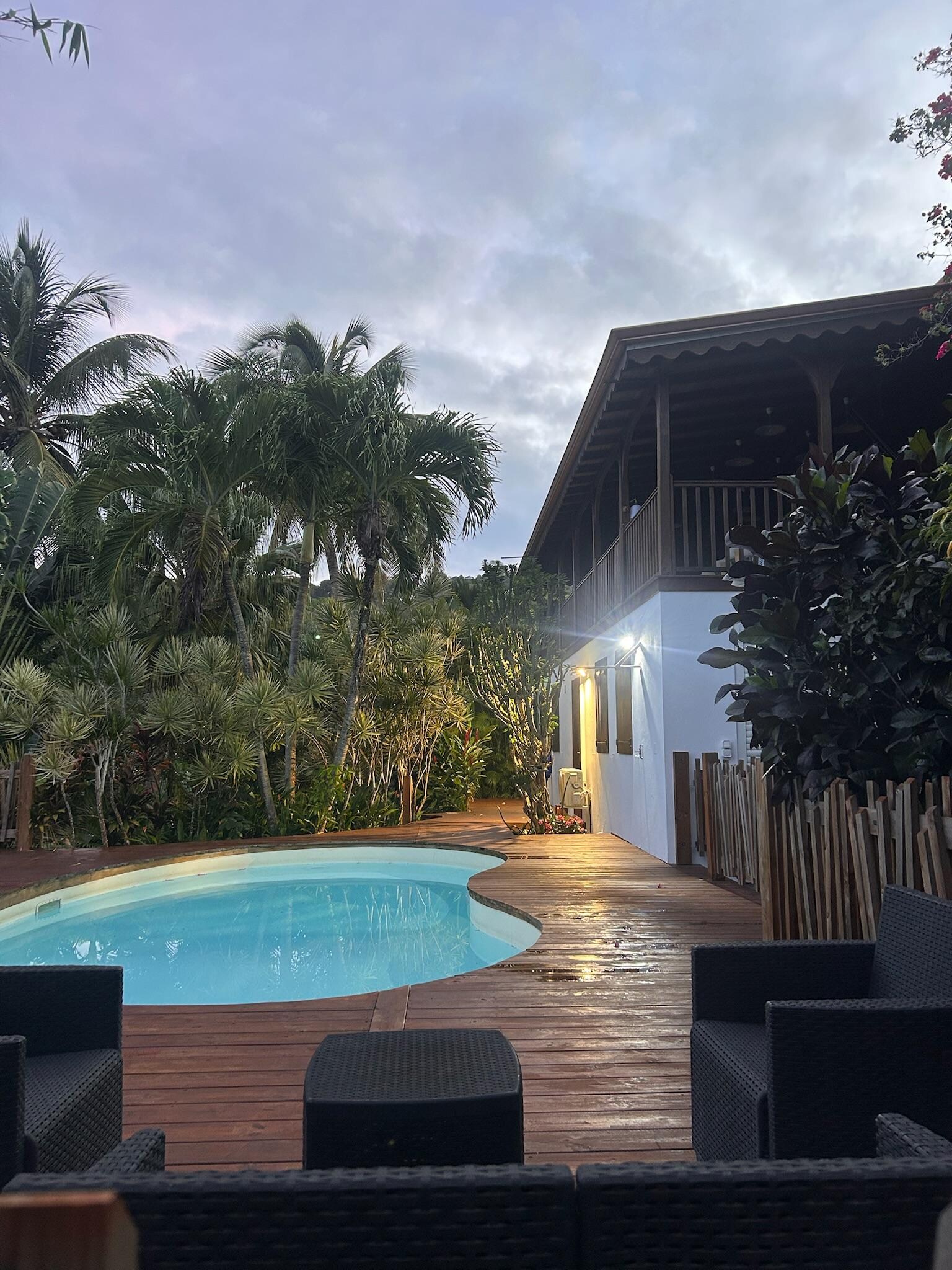 Arrivé impeccable,la villa est très jolie .le petit hic se sont les chambres du bas ,odeur de renfermé et pas de fenêtre dans une,obliger de dormir avec la porte ouverte et mettre les valises devant pour faire un barrage pour les bêtes .peut être pensé à une moustiquaire à la porte pour permettre de respirer.tout ce qui est meuble,vaisselle et électroménager rien à redire tout est parfait et de bonne qualité . Pensez aussi à une à deux étendoirs à linge car pour 10 entre serviette maillot et linge propre c’est compliqué . L’endroit est parfait pour visiter basse terre