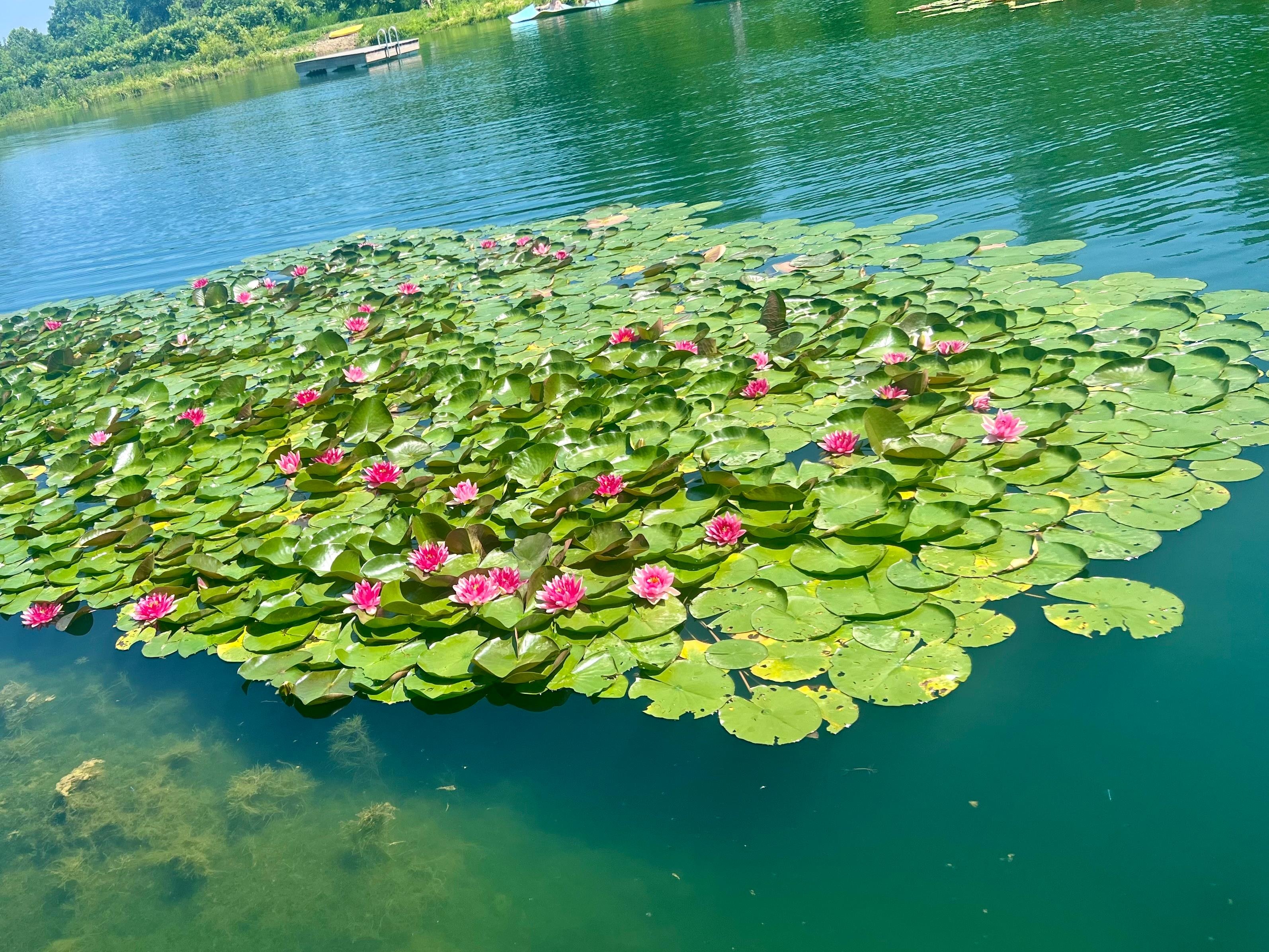 • 2 lily pads (1 purple, 1 yellow) are in full bloom through spring and summer.