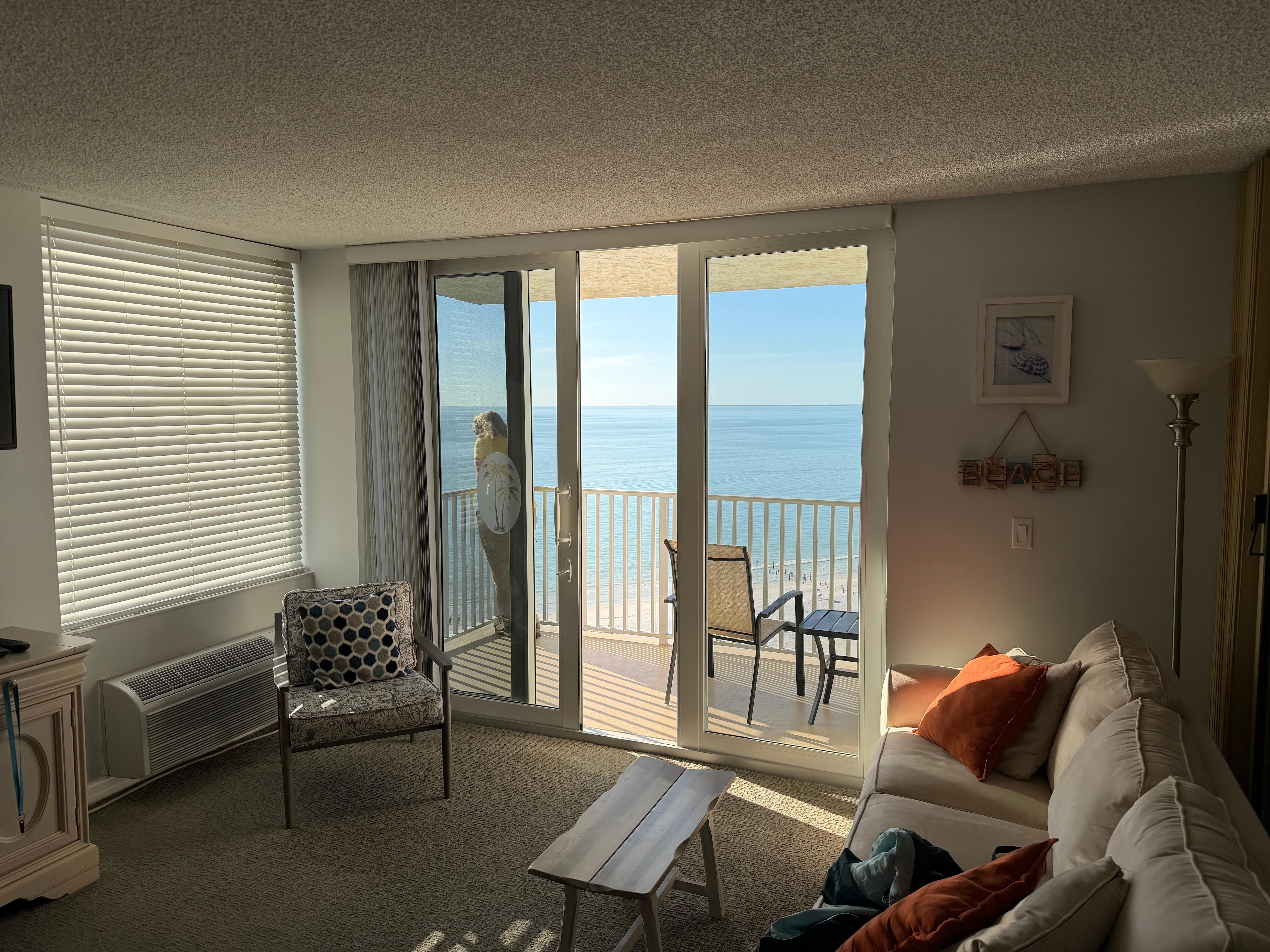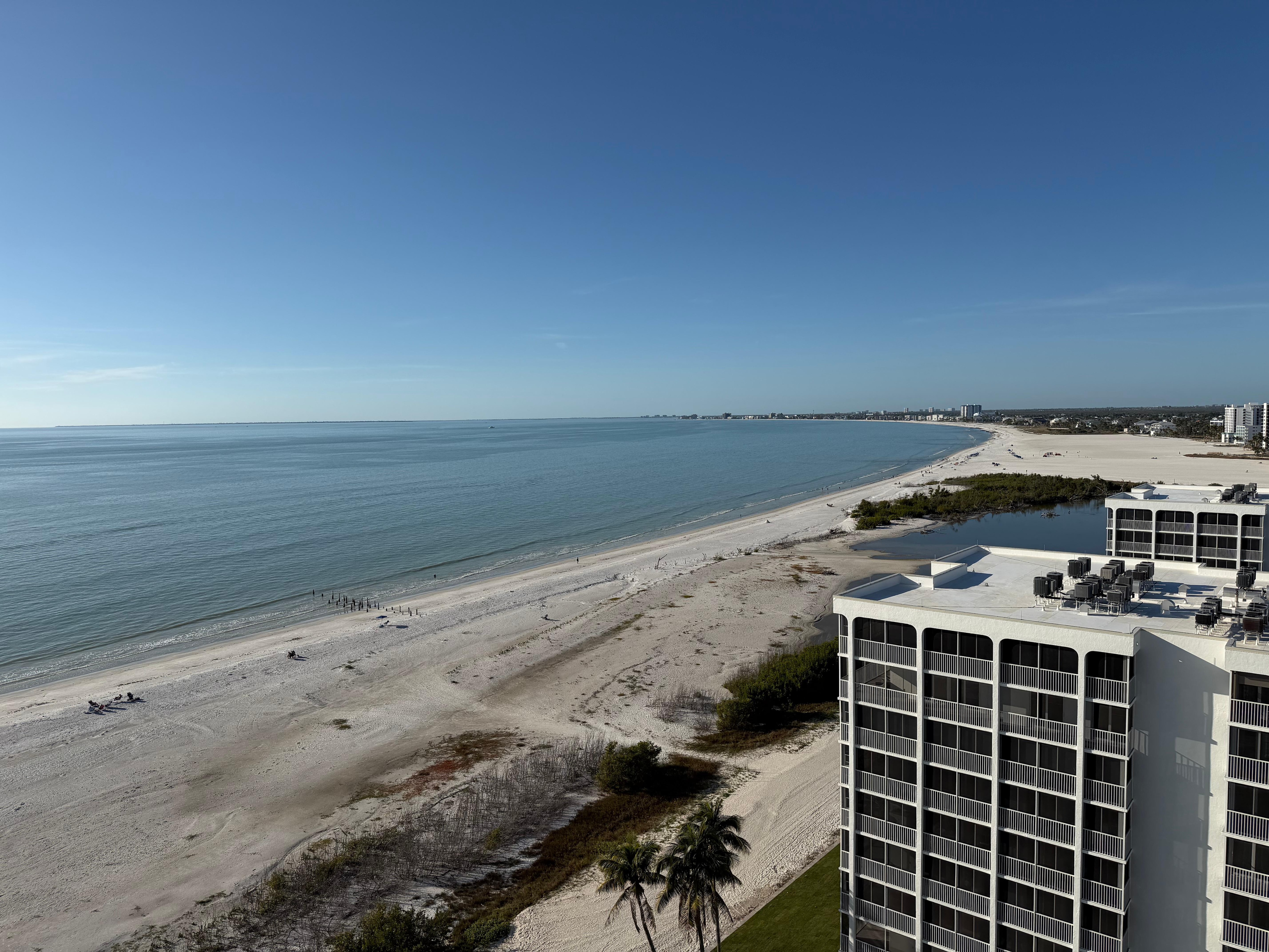 Enjoy a 330 degree panoramic view of the white sandy beaches of the Gulf of Mexico. Located on the South end of Fort Myers Beach. Unit is complete with a 1 bedroom King Size Bed, Full Bathroom, Queen Size Pull Out Sofa and full Kitchen. Near Restaurants & Bars, Shopping.