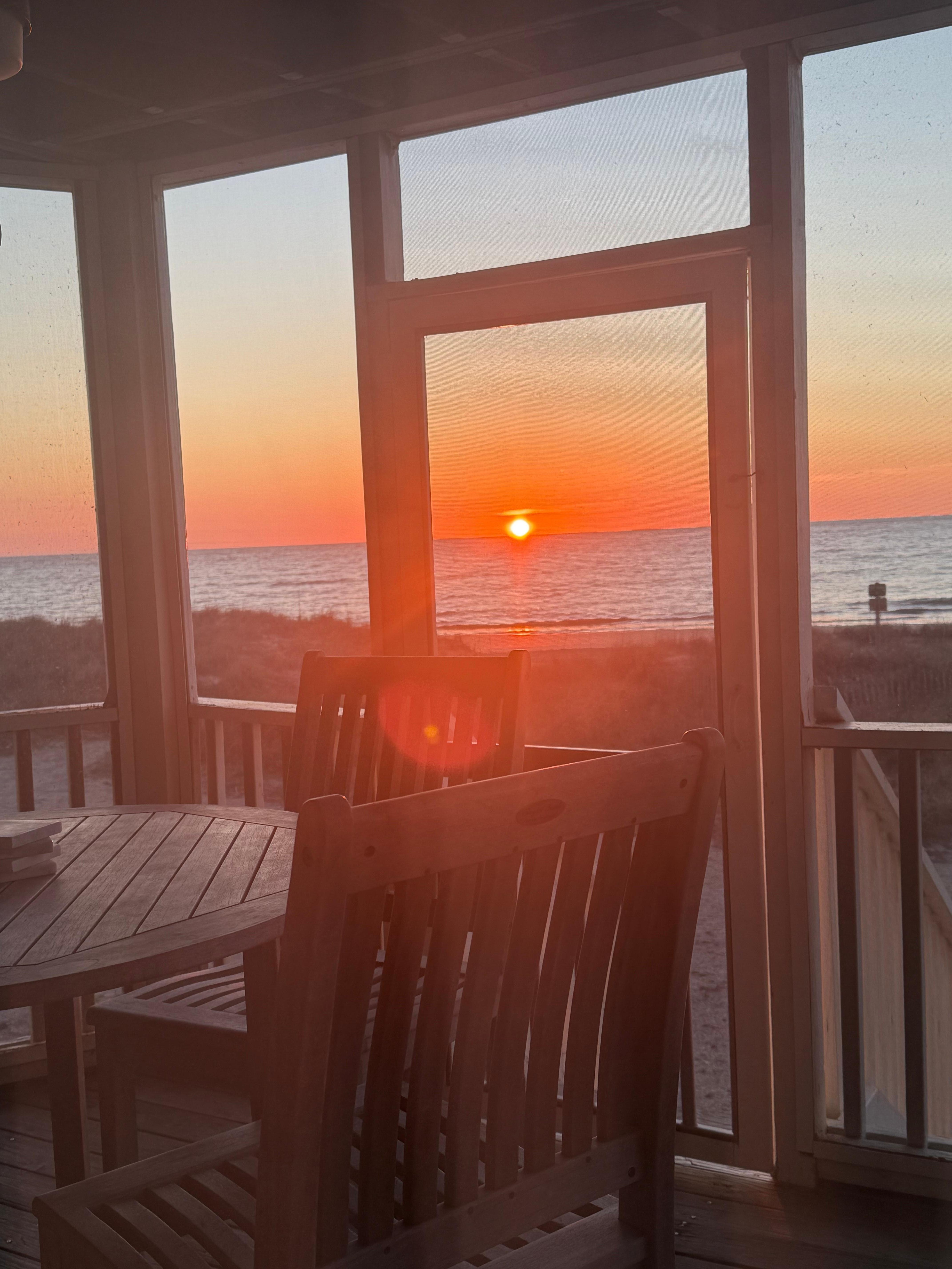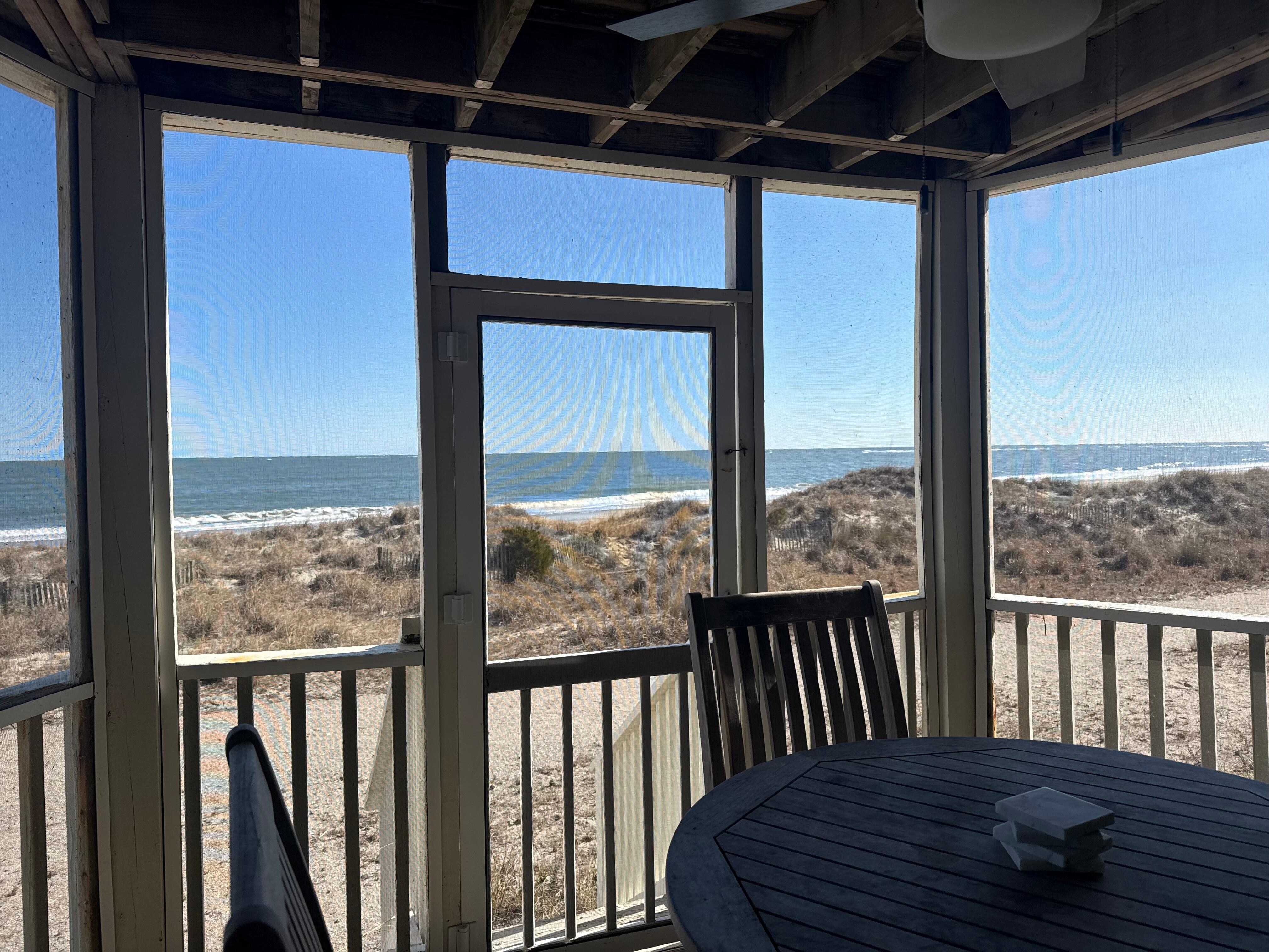 The luxurious interior can accommodate up to 4 adults. It features a spacious master bedroom with a king size bed. There is a fold out daybed in the foyer. Both your living room and bedroom have majestic ocean views! The bathroom has a walk-in shower with rails. Dining areas include a functional kitchen and dining nook plus a screened-in porch dining area with 180 degree Atlantic Ocean views - both wonderful options to enjoy a breathtaking sunrise breakfast or those nights when feel like staying in and want to feel the ocean breeze.