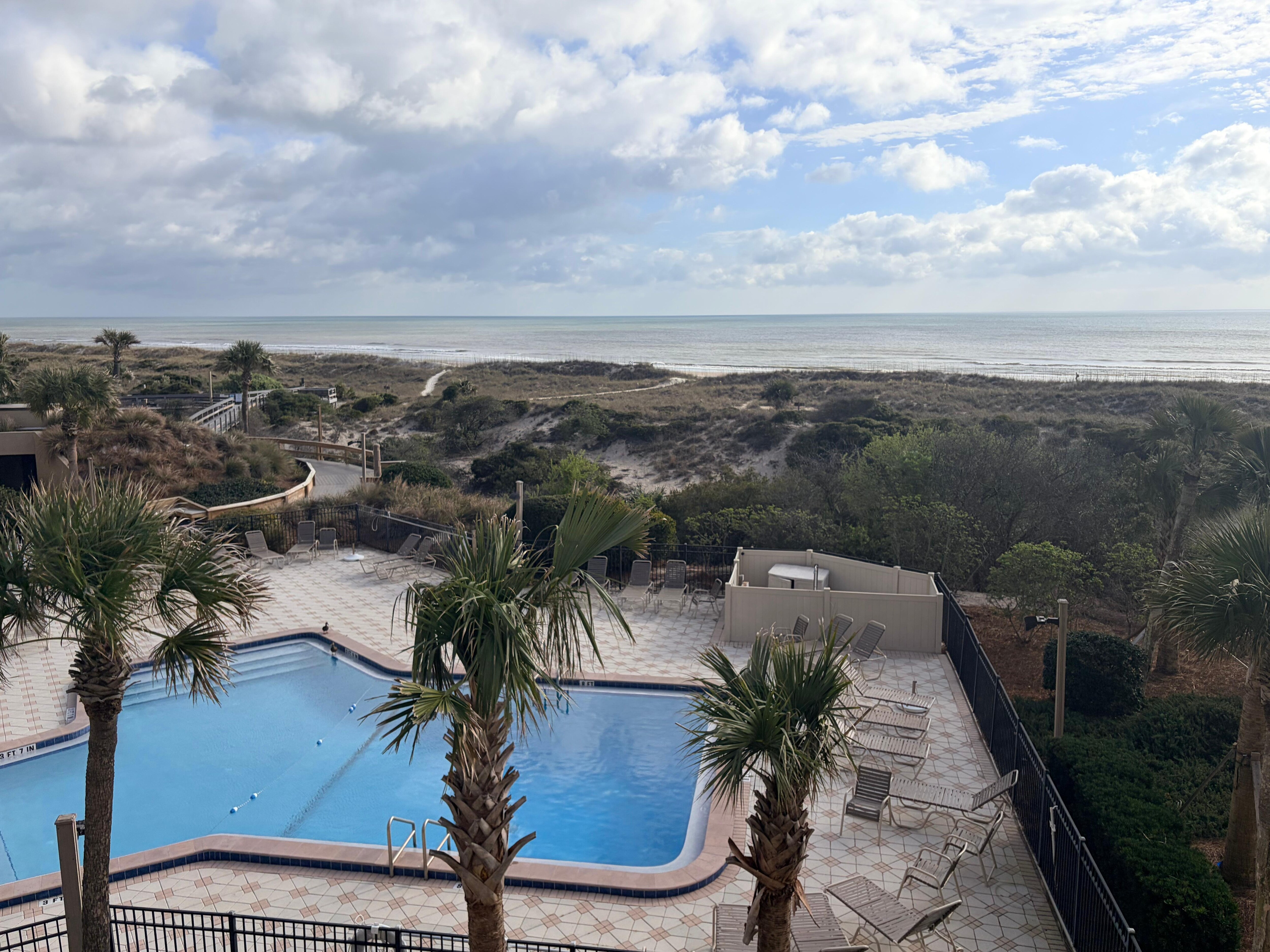Wake up each morning to a commanding view of the Atlantic Ocean and the sandy dunes at this one-bedroom, oceanfront condo at Amelia Surf and Racquet.