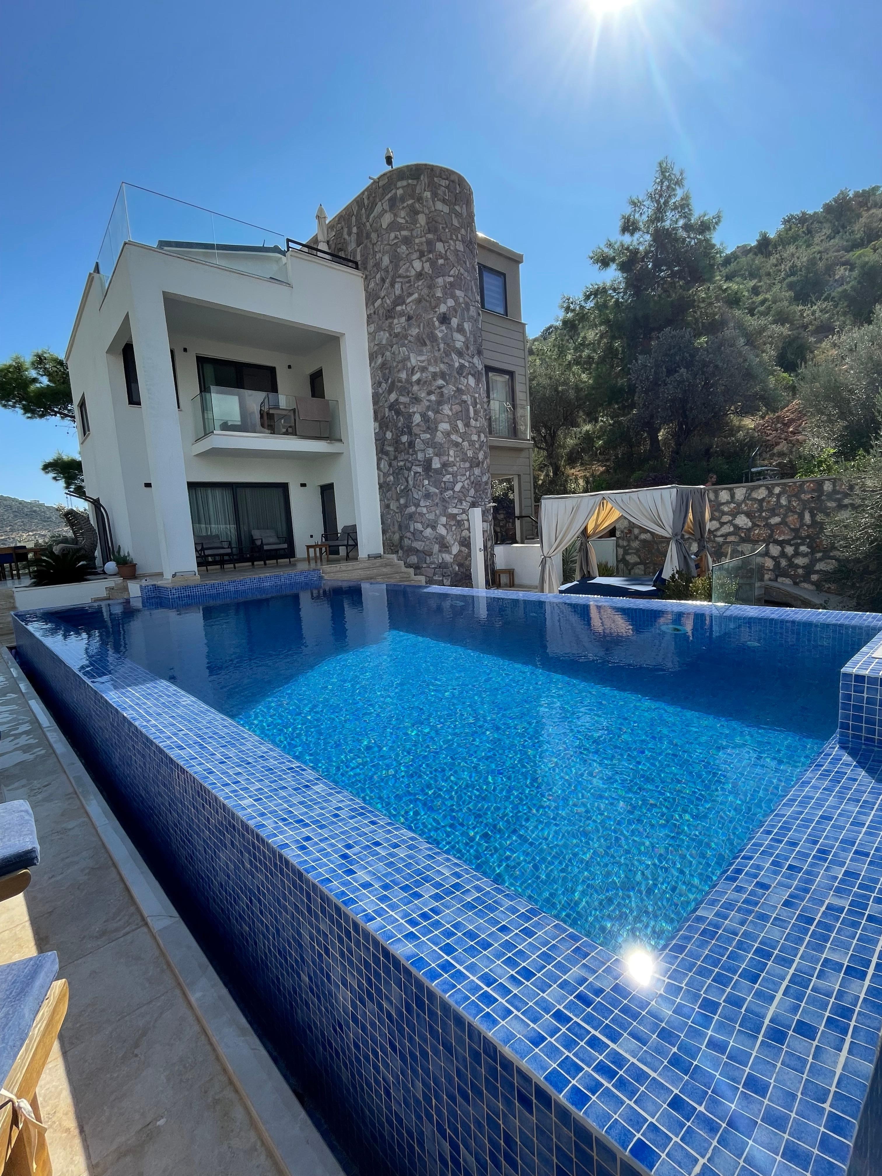 Villa in Kalkan Kisla with large 10 m infinity pool. Very quiet area with no disturbing music or city noise and the nature is your closest neighbour.