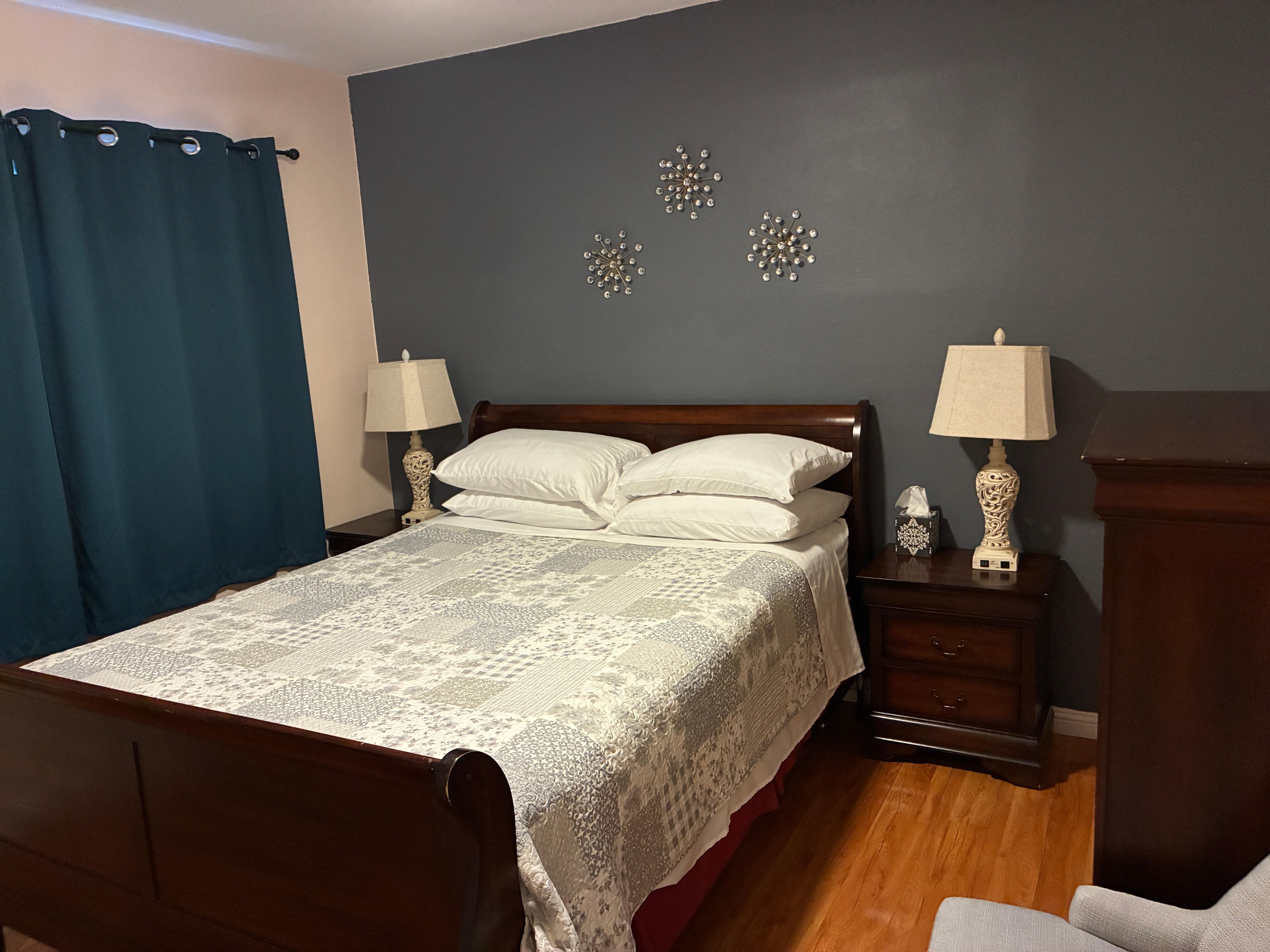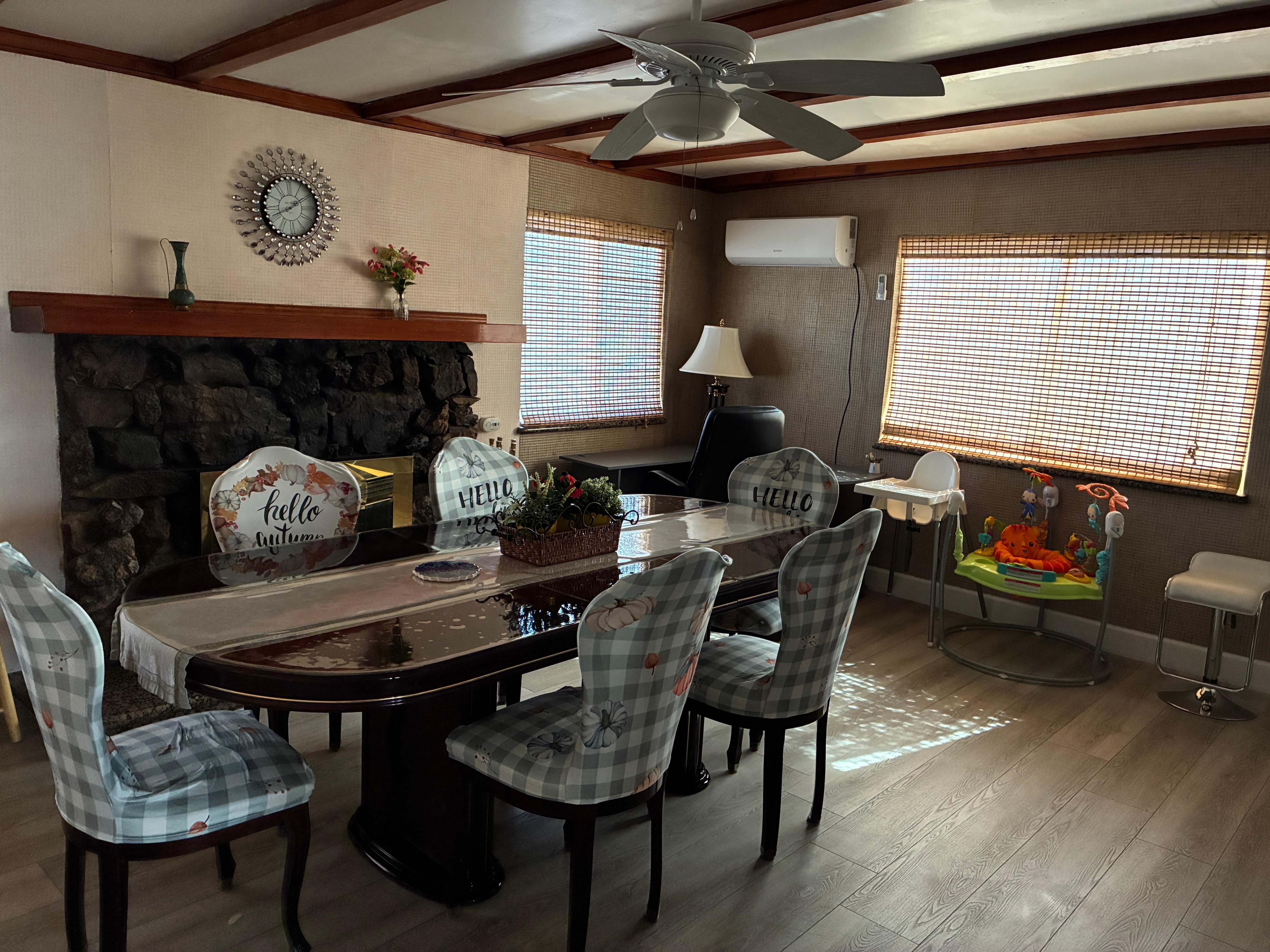This is a one story renovated modern house that has 4 bedrooms and 2 baths. It is a single family house with a vast living room and a family room. It also includes an authentic traditional style fireplace, perfect for wintertime bookings. Both the front and backyard are large unrestricted areas and provides ample space for smoking. The property is also conveniently located near a shopping plaza that has restaurants and services that caters to your every need. This house is professionally cleaned and maintained to exceptional health standards to ensure our clients' safety and experience.