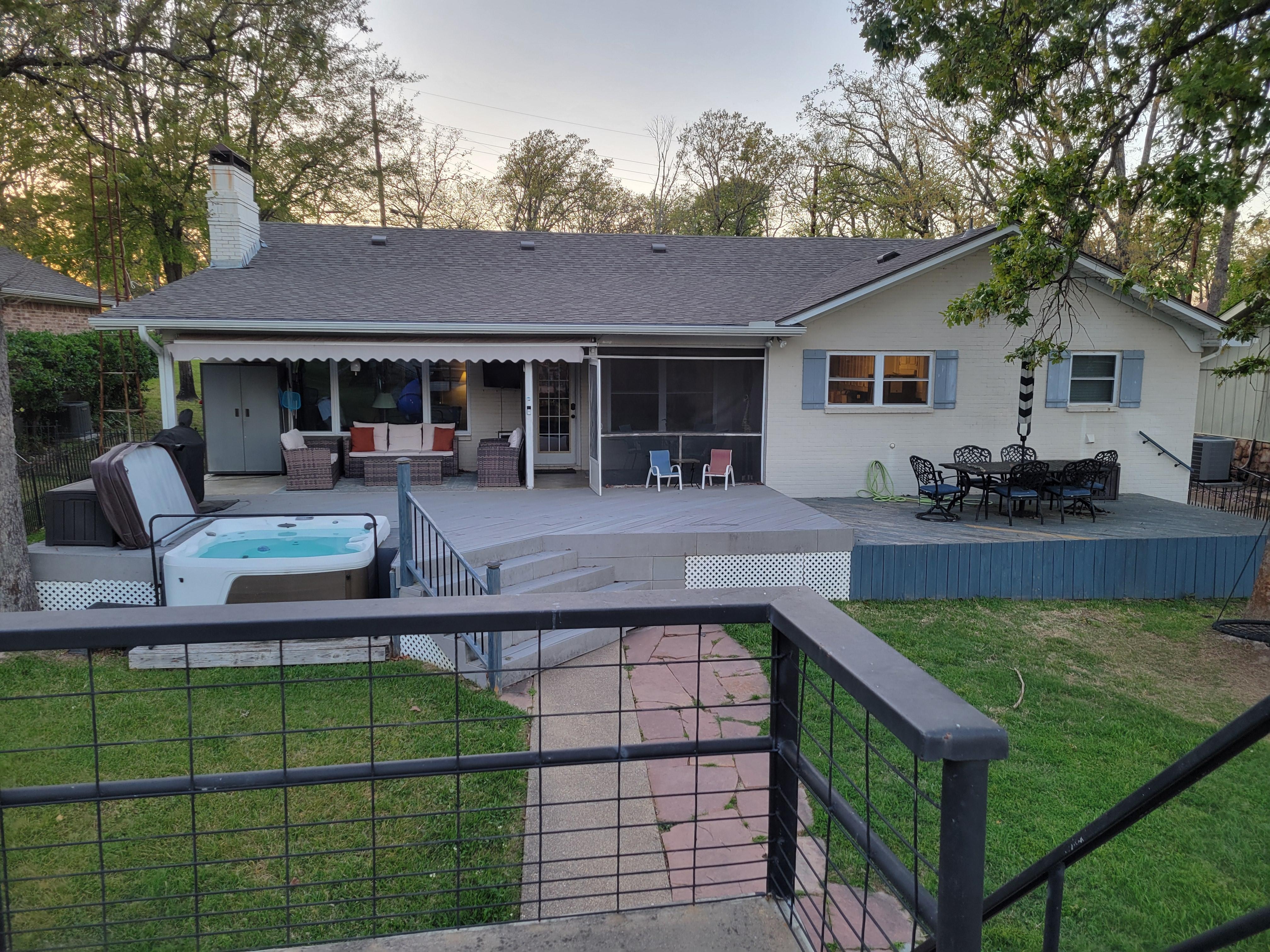 Relax with the whole family at this peaceful waterfront property. Fish, kayak, swim, grill, unwind in the hot tub, and gather around the firepit. This lake house is kid and dog friendly with a backyard (fenced in), rope swing, and large deck to sprawl out and enjoy each other's company. Take in the lake view from the roof-deck of the boat lift, sip coffee from the screened in porch, or cuddle around the fireplace.