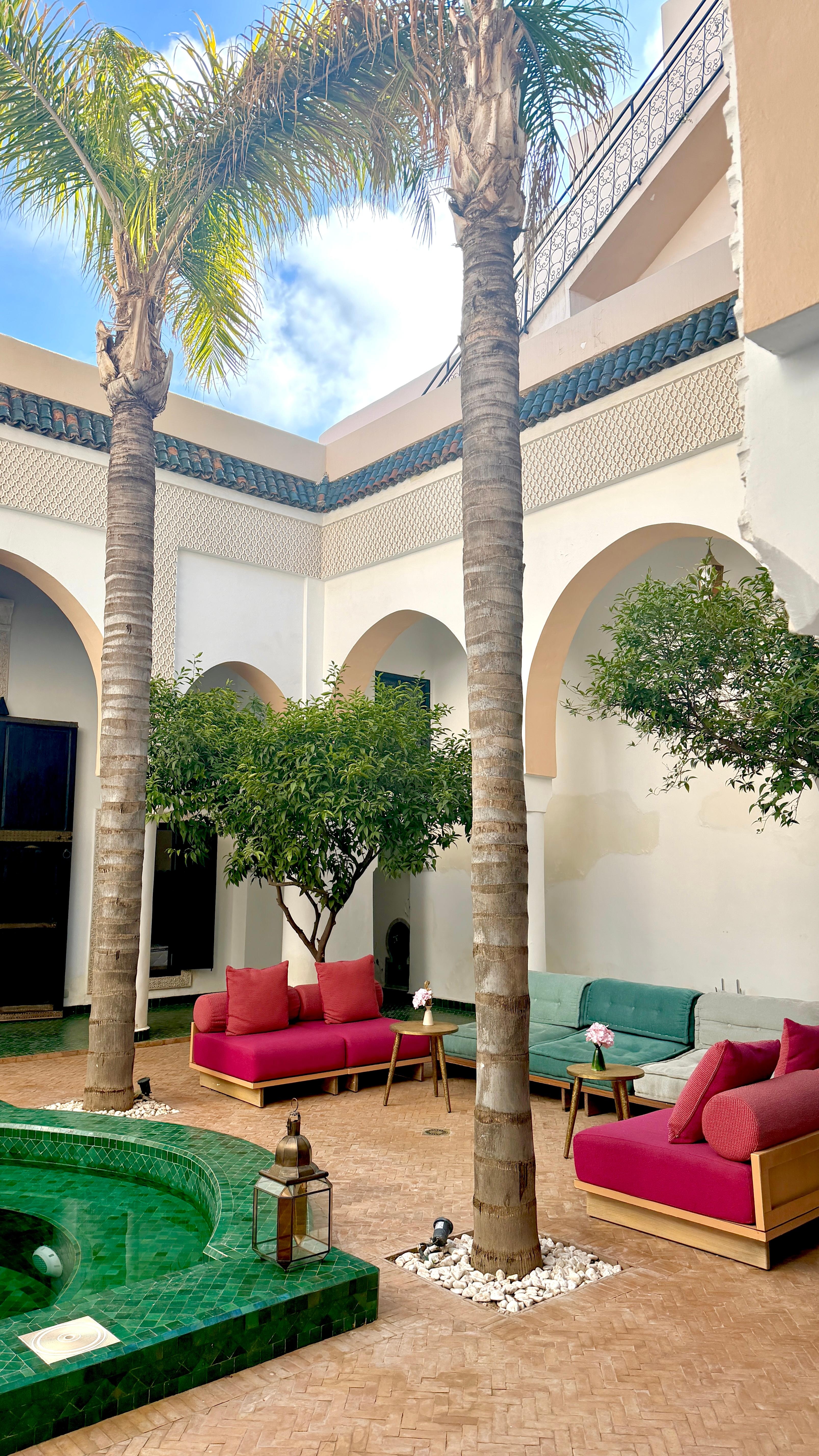Kjempe fin Riad, vi koste oss mye. Vi ble hentet på parkeringsplassen da vi ankom på kvelden (avtalte skyss med Riaden på forhånd - anbefales!). Veldig behjelpelig personale. Ligger i et rolig område, tar ca. 25-30 min å gå til sentrum av medinaen (Jemaa El Fnaa) men det gjorde oss ingenting. Riaden serverer veldig god mat! Føltes trygt og avslappende