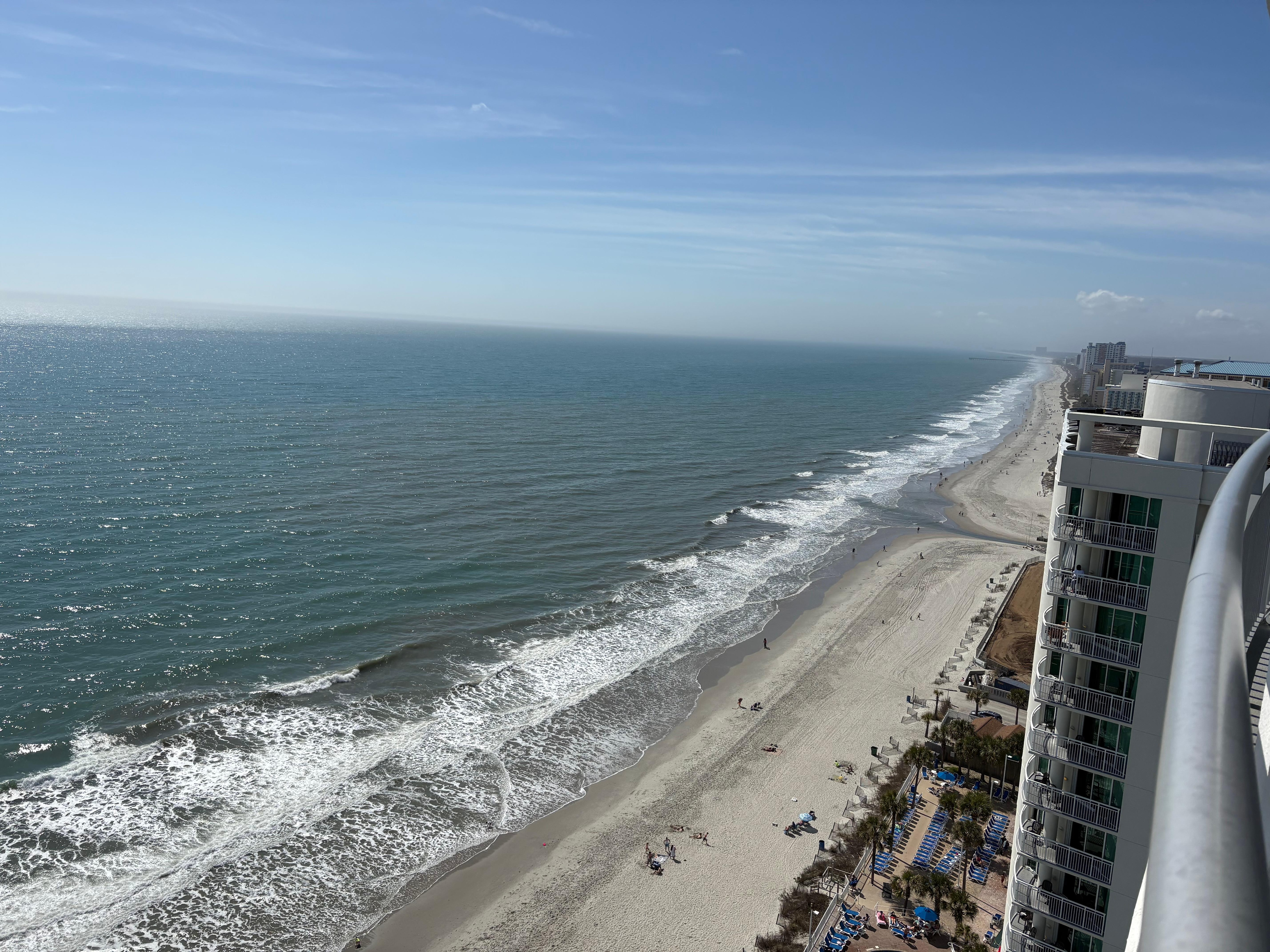 This beautiful 2 bedroom, 2 bath condo is a spacious 1000 sq ft directly on the oceanfront on the 21st floor of the resort. Enjoy beautiful East Coast Sunrises or watch the dolphin play from your balcony while having your morning coffee. The condo will sleep up to 8 people with a king in the large master suite with balcony access, and 2 queens in the second bedroom and a queen sleeper in the living room. Each bedroom is equipped luxury linens, lots of closet space and flat panel tvs. The master bath has a jetted tub/shower combination, the 2nd bath has a tub/shower combination. Plenty of space for everyone to clean up when coming in from a full day at the beach. The full sized kitchen is fully equipped with beautiful granite countertops, stainless appliances and has everything you would need for those days when you want to just stay at the resort and dine in. You will also have your own private washer/dryer in the condo so that you can keep those beach towels and swimsuits dry and ready for use.