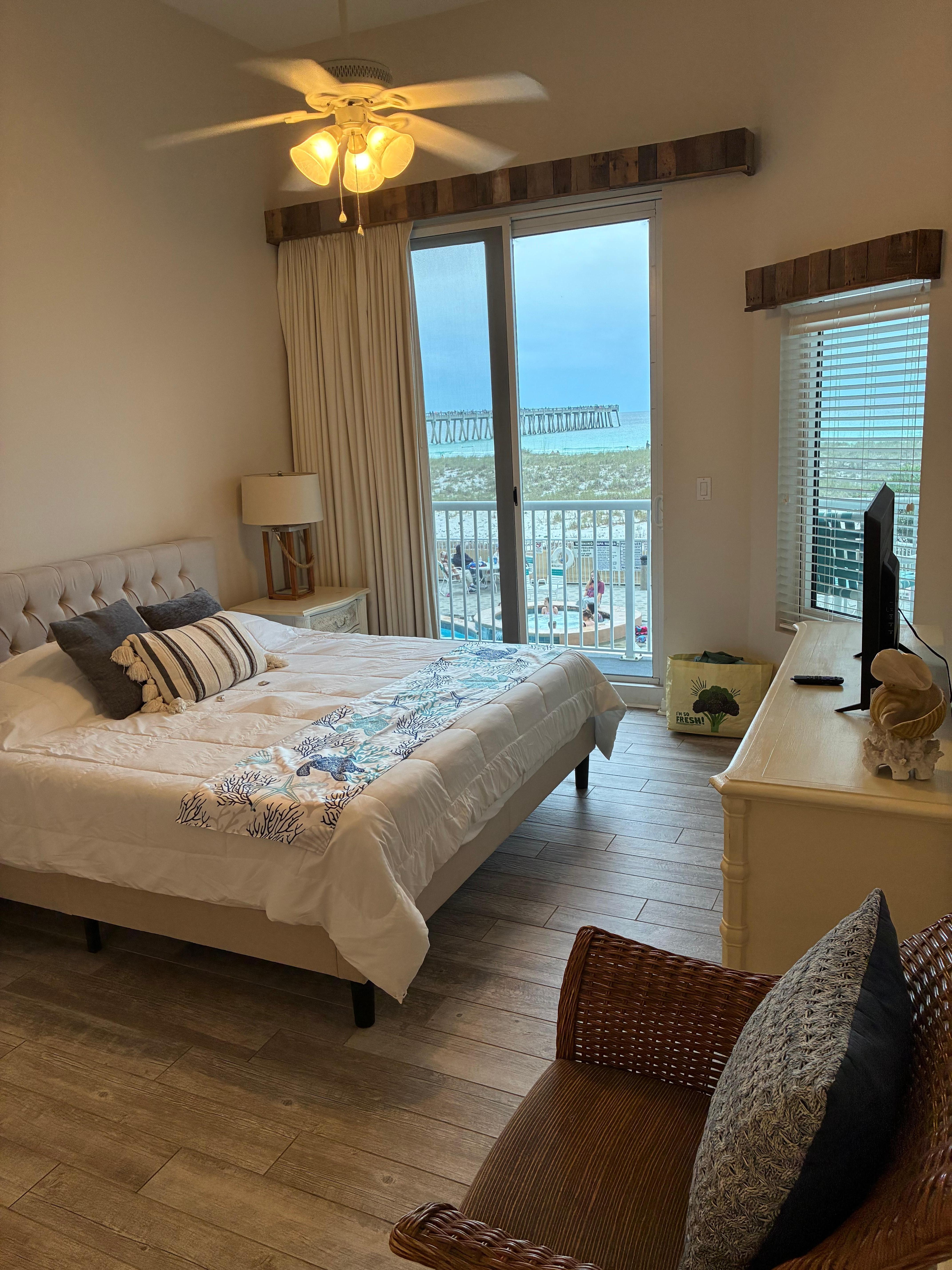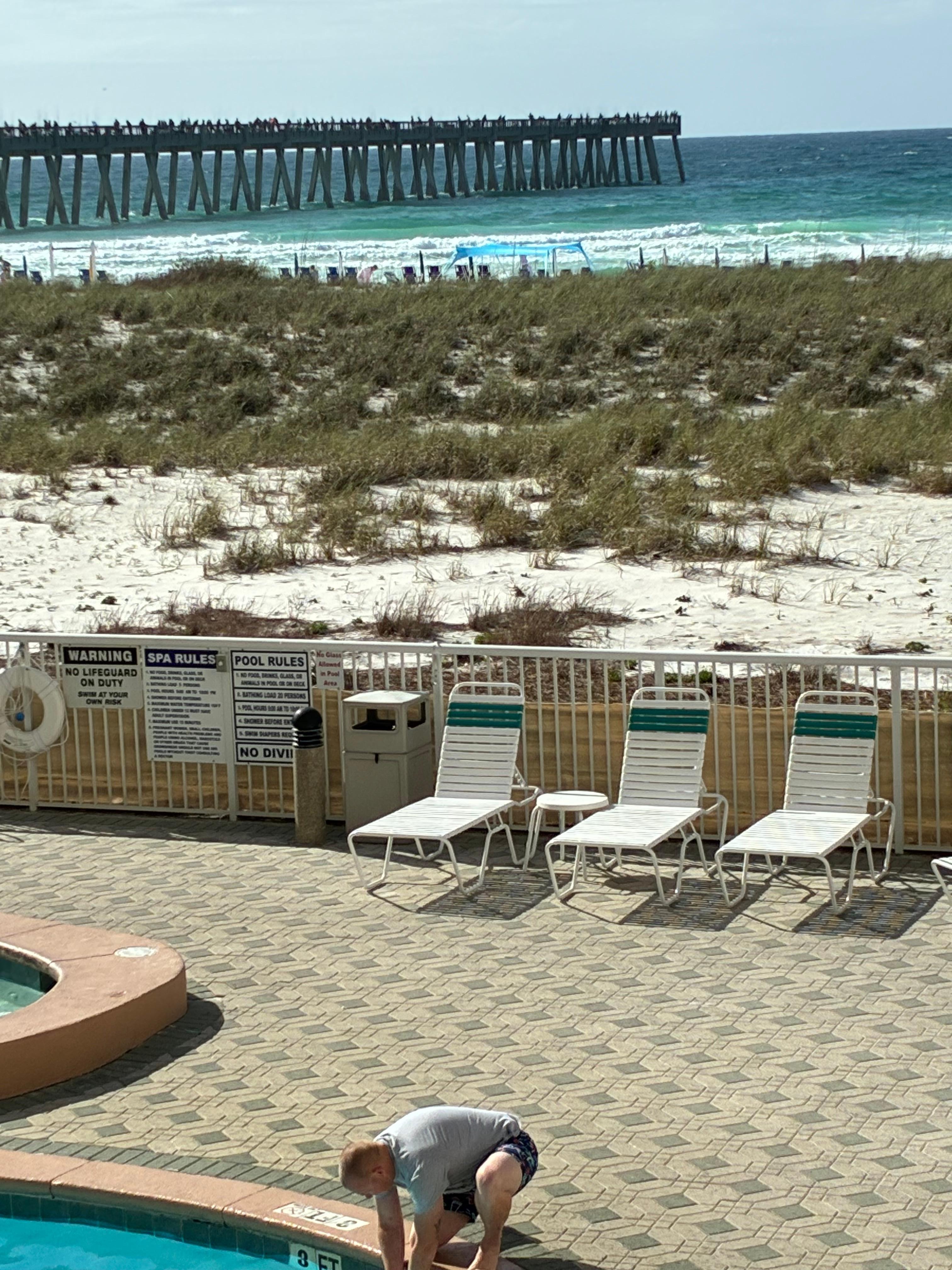 This luxurious 1st Class 3 bedroom and 3 bath Condo provides stunning views of the white sand beaches, emerald green waters of the Gulf of Mexico, longest fishing Pier right below the balcony on the Gulf of Mexico, and sun kissed sky views!
