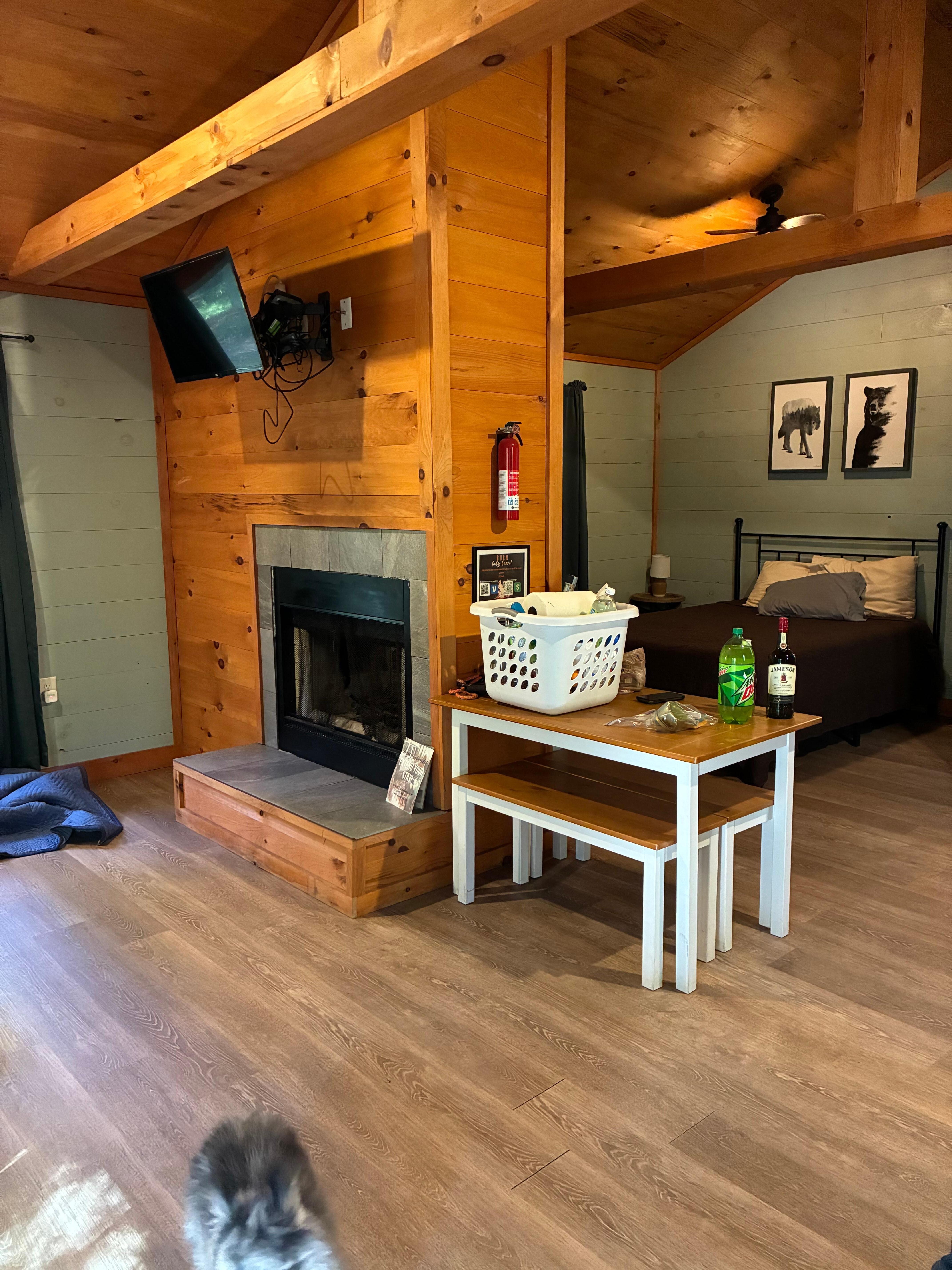 Cabin was pretty and cozy. But it smelled faintly of smoke. We had no clean towels. The shower only had hot water if you barely turned it on.