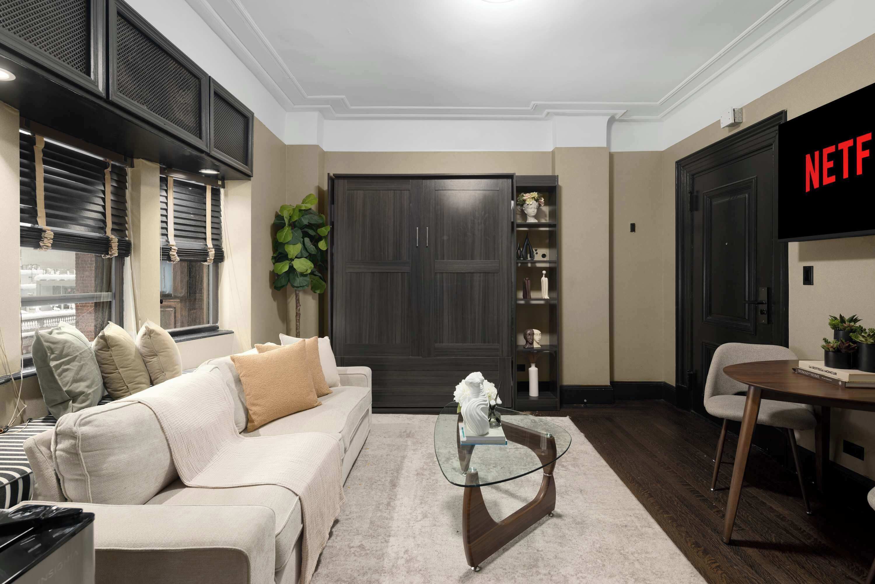 New York is waiting for you at this 2-bedroom apartment. Inside, guests find two queen beds and a cozy living room with a sofa bed, perfect for relaxing after a day of exploring. The space feels peaceful and inviting, with thoughtful touches like heating and air conditioning to keep you comfortable year-round. A well-appointed bathroom includes a hair dryer for convenience. Whether you’re here for a quick getaway or an extended stay, this tranquil retreat offers a welcoming spot to unwind. Our place is equipped for both long or short stays to make your holiday one to remember.