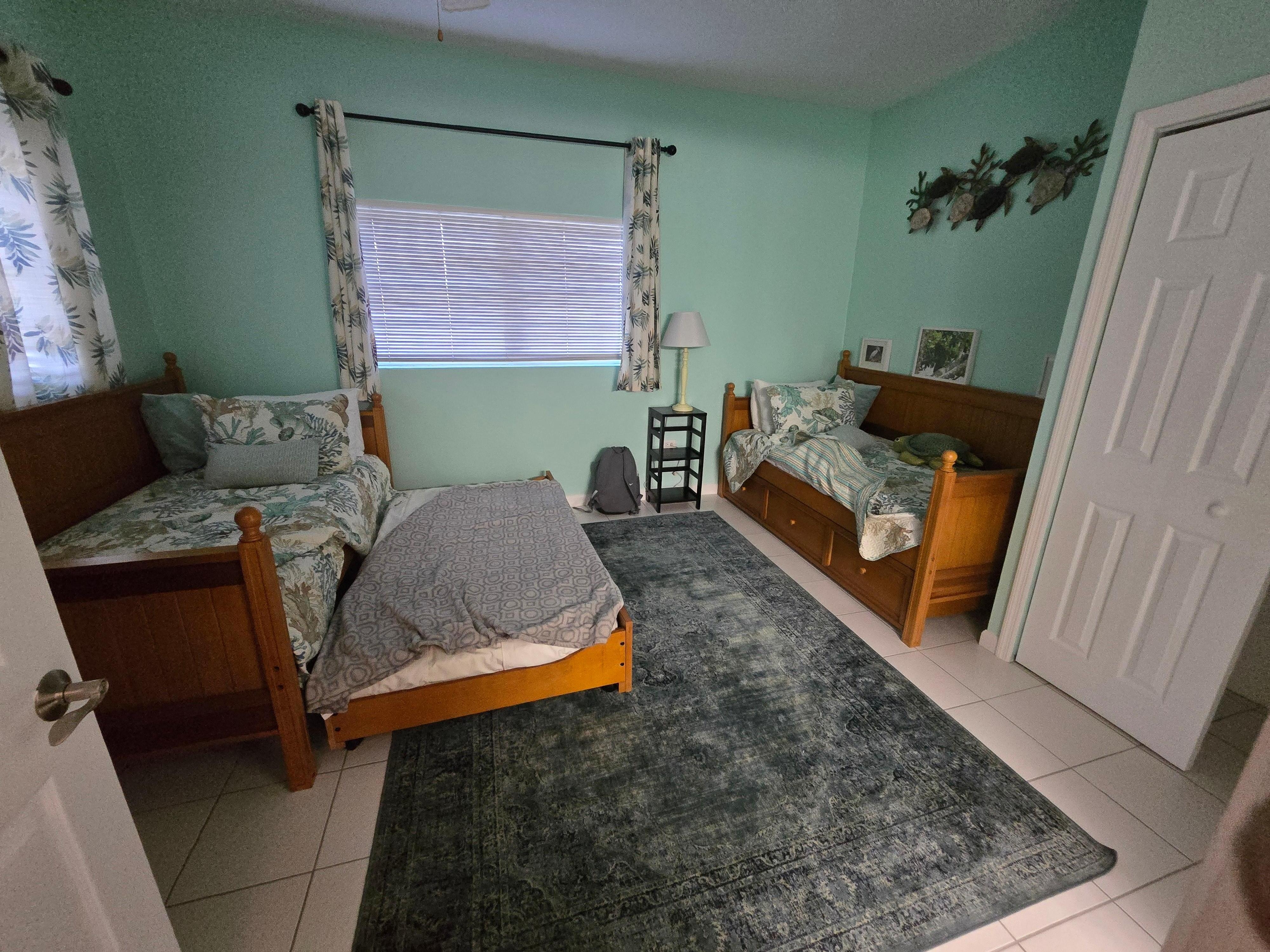 Guest Bedroom - This room is equipped with two very comfortable trundle beds with a private bath with newly renovated walkin shower. A forty inch Smart TV is included for night time viewing.