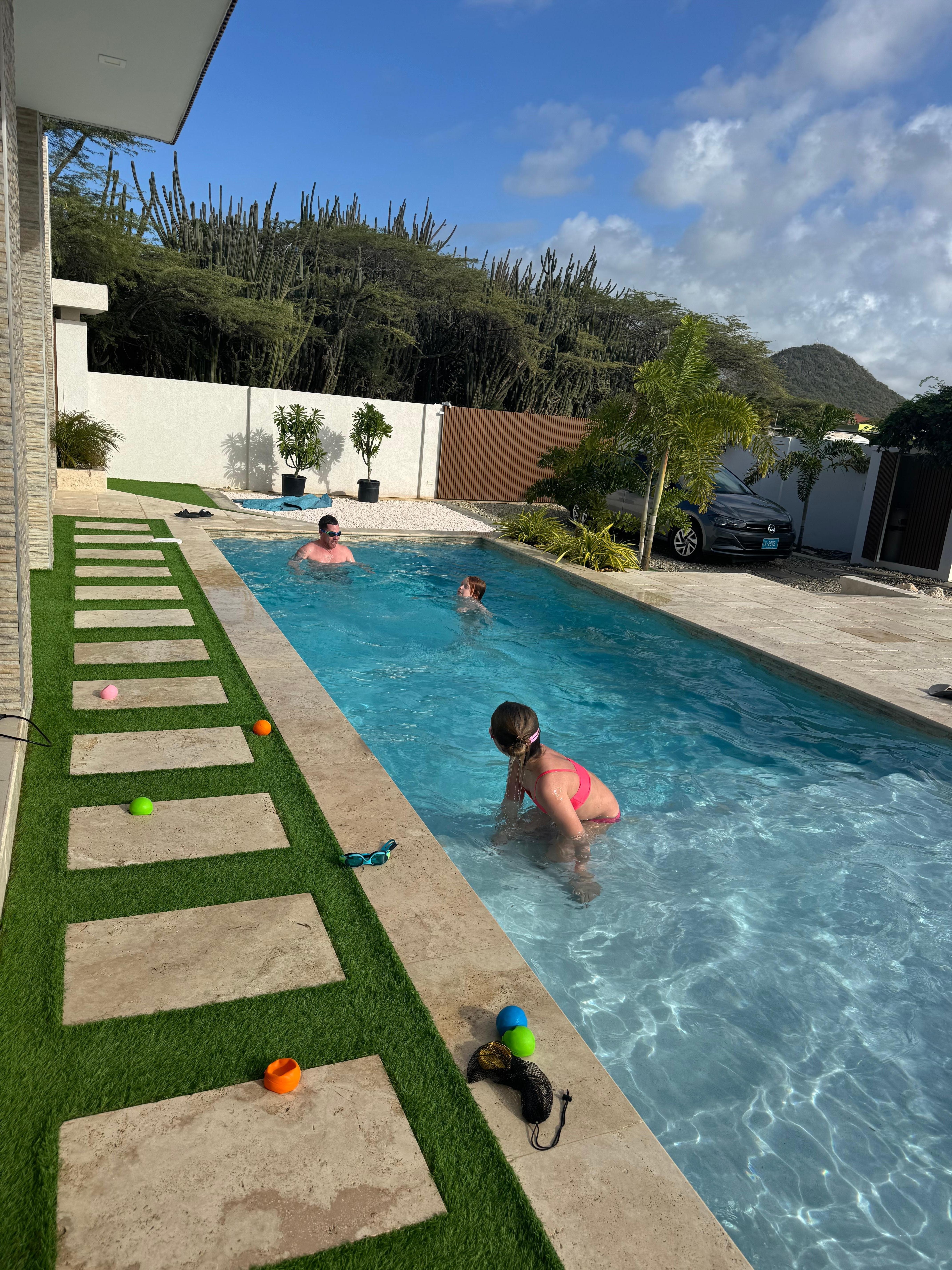 We absolutely loved our stay at Arunova! It truly is an oasis. The home itself was beautiful, clean and well appointed. The outdoor space is stunning- the pool, the various seating areas, and the outdoor dining area were well used by our family. We loved the location- it was quiet, serene, only a 15ish minute drive to the beach, and close to various grocery stores. Shar was easy to communicate with and answered any questions quickly. Our only regret is not booking two weeks and staying longer.