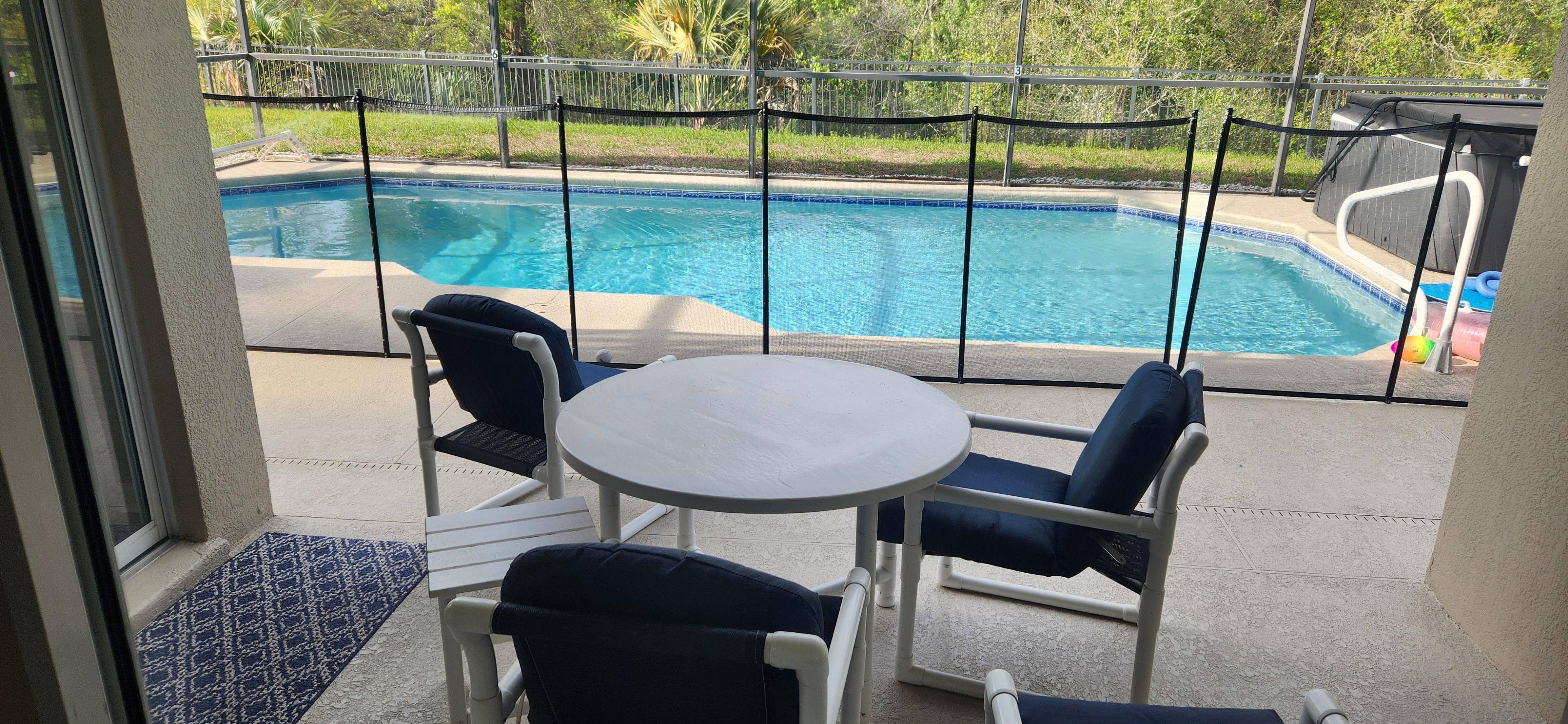 POOLSIDE AMENITIES: Barbecue, 4 lounge chairs, 4 table chairs, 1 tables, safety gate, south-facing pool. FREE POOL & SPA HEAT !!