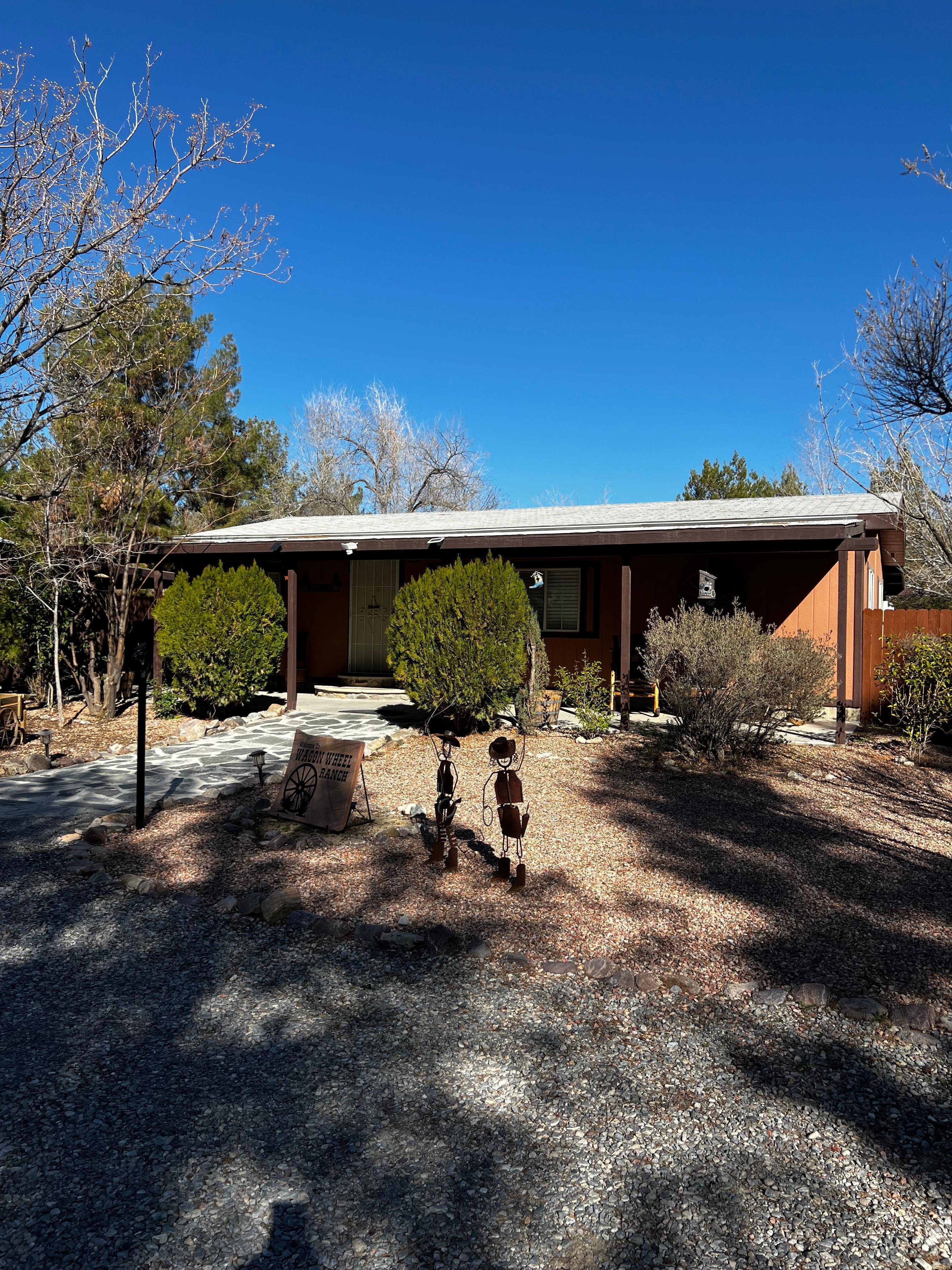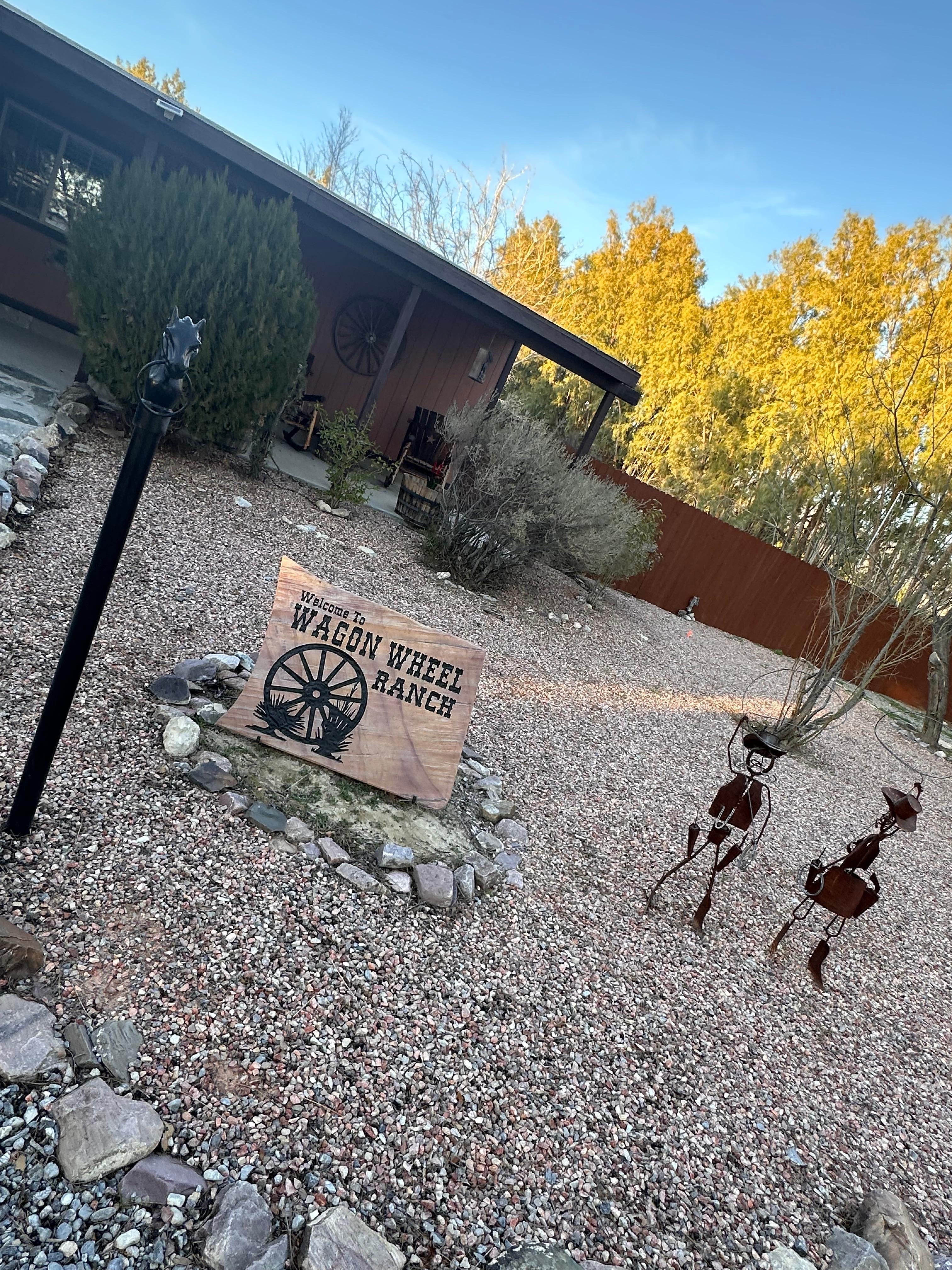 Western decorated 2 bedroom, 2 bathroom ranch style house with hot tub, cowboy pool(stock tank), barbecue, fire pit, outdoor dining area, horseshoes, corn hole, darts, and tetherball. There are also many board games for the entire family.