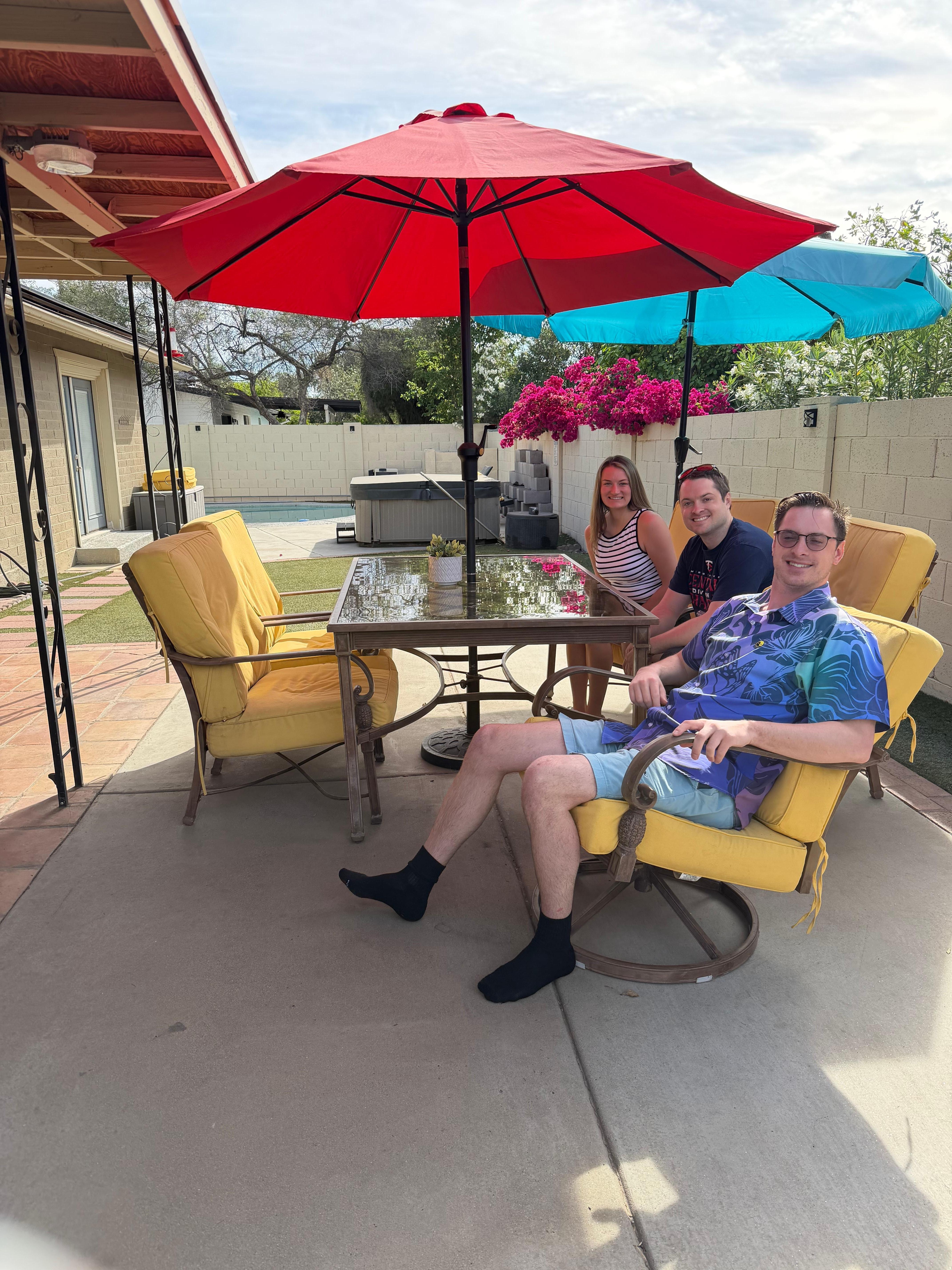 We were in town for a family baby shower. The party was 2 blocks from the rental house. Perfect location with shopping, restaurants and grocery stores nearby. Easy drive to the airport. Great parking and good communication with the host. Pool and hot tub available. Great backyard with nice patio furniture and mini putting green. Would stay again. Just like being home.