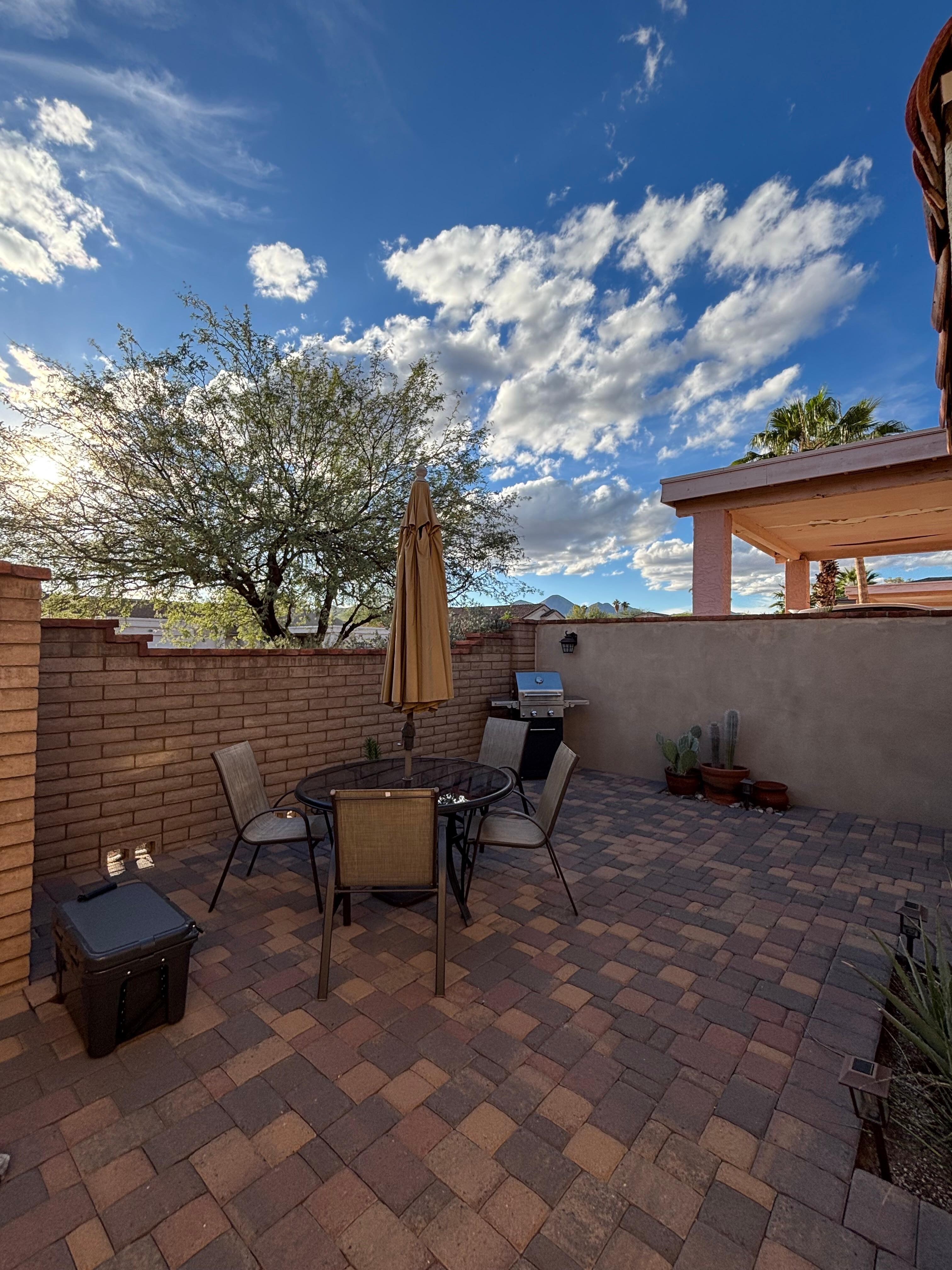 A fully screened in Arizona room is situated at the back of the house that looks out onto the backyard. You can also stoke up the fire pit on the back patio and take in the beautiful Arizona nights under the stars.