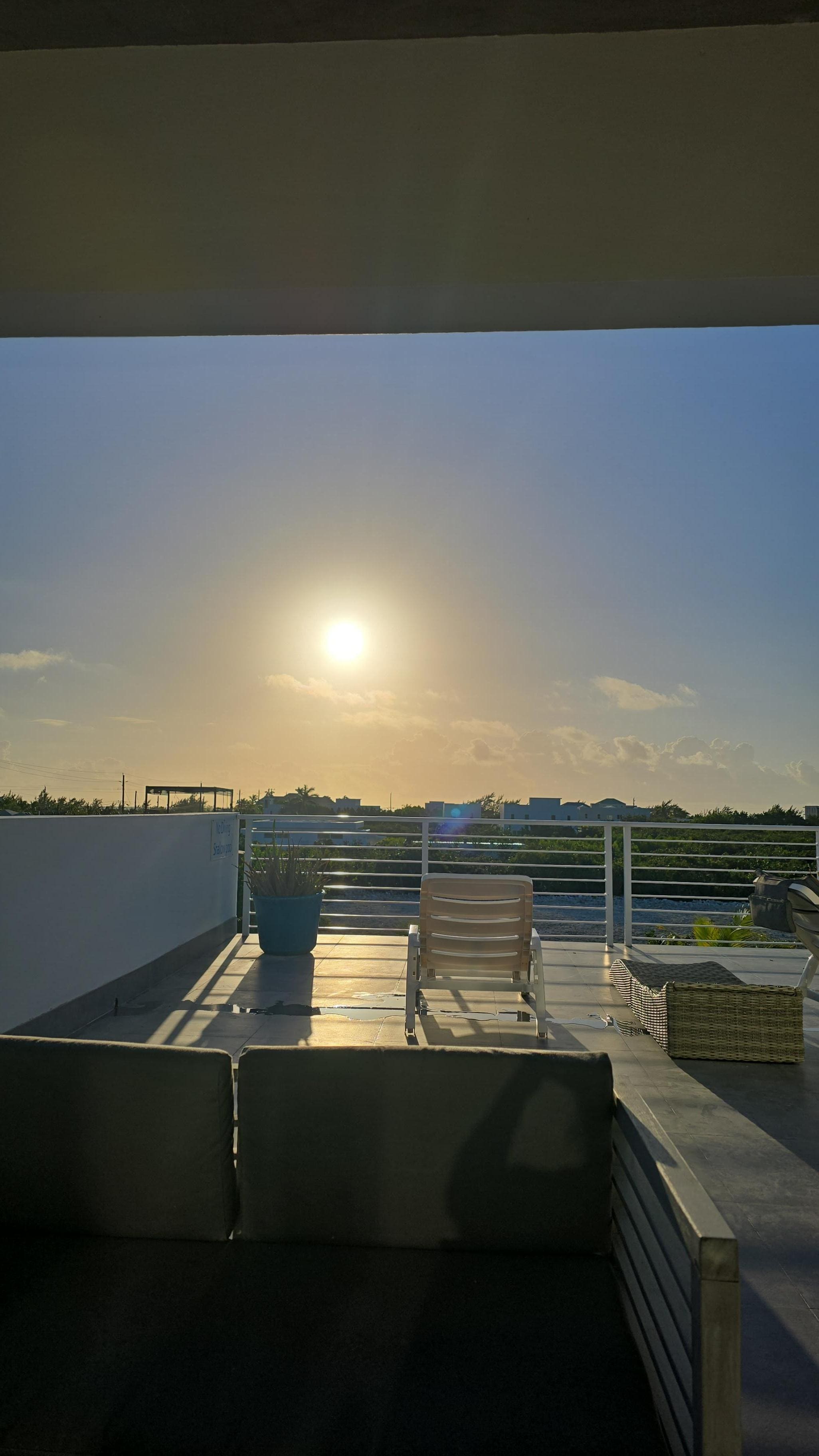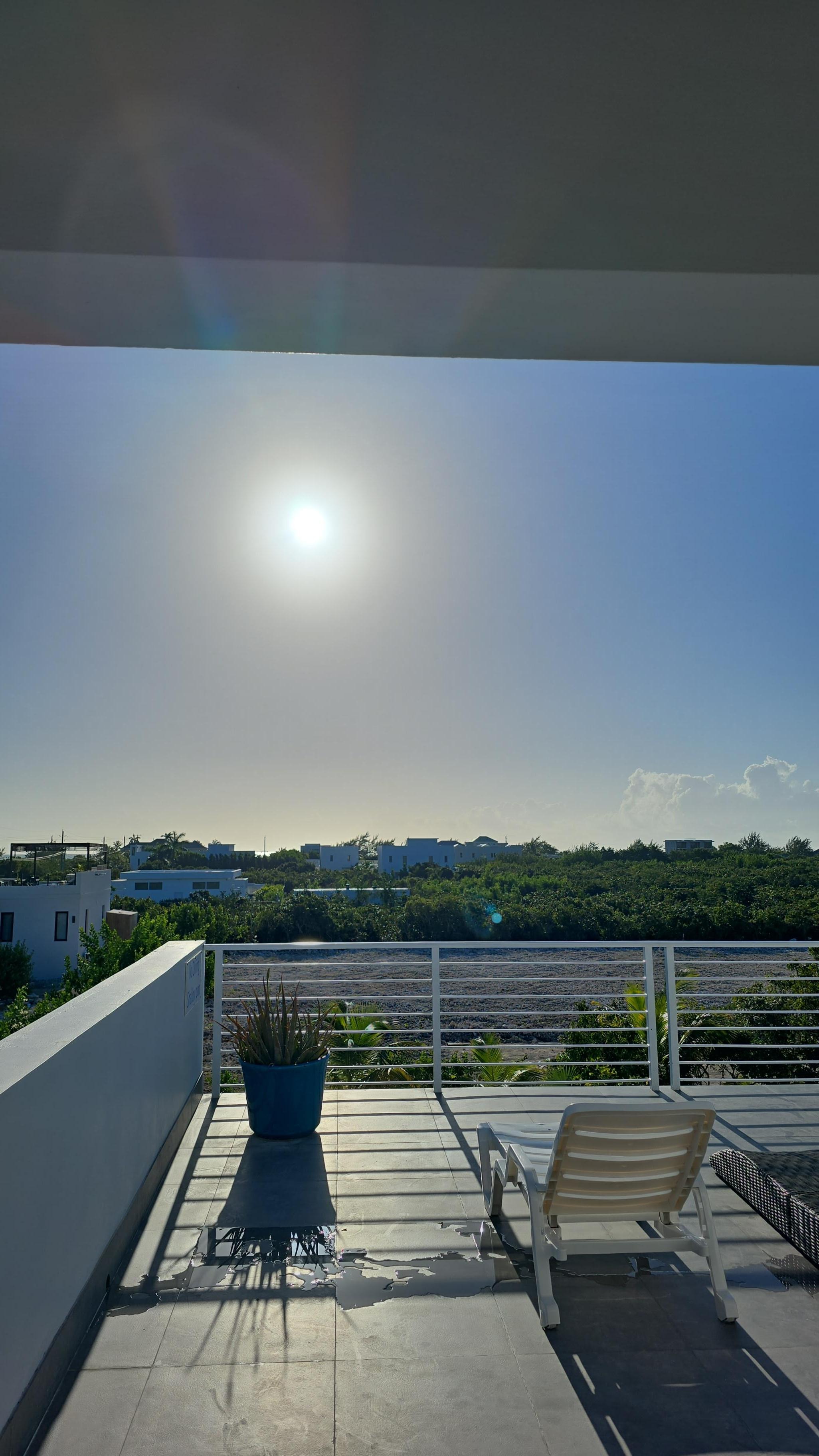 Unwind on the main covered patio, or head upstairs to a second open-air terrace where you can soak up the sun and catch glimpses of the turquoise waters of Long Bay. Whether you're lounging poolside or enjoying a sunset drink, every space invites you to slow down and take in the serene island vibe.