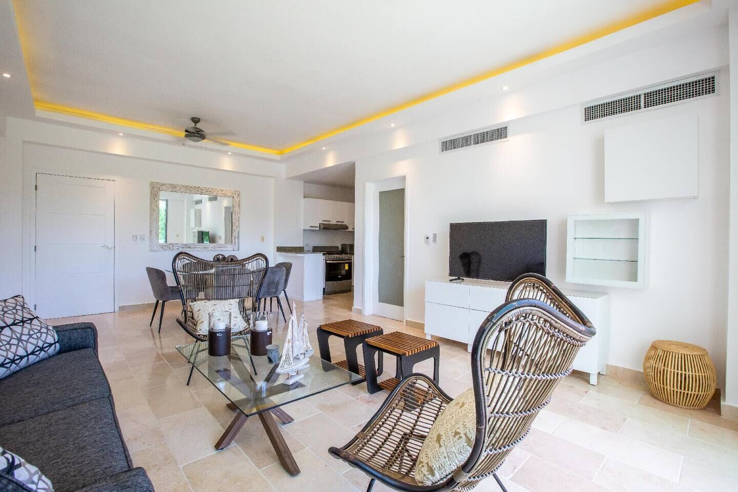 Confy apart CAP CANA offers 12 accommodations with air conditioning. Flat-screen televisions are featured in guestrooms. Accommodations at this 3-star apartment have kitchens with refrigerators, microwaves, cookware/dishes/utensils, and dishwashers.