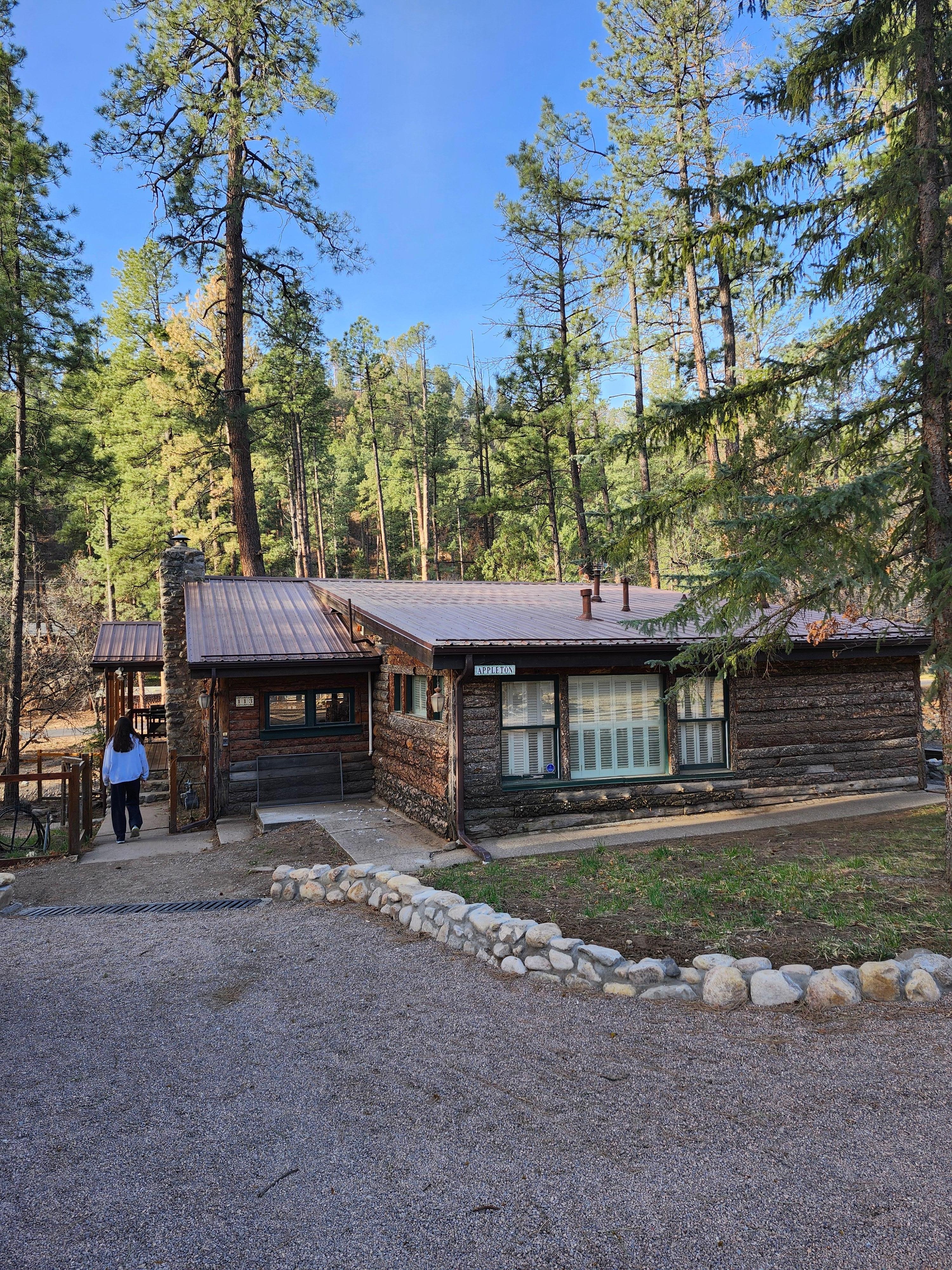 Nestled along the tranquil banks of the Rio Ruidoso, The Apple Tree cabin offers a true escape into nature's embrace. Located just minutes from Midtown, this authentic cabin is surrounded by the crisp mountain air, lush forest, and abundant wildlife, making it the perfect setting for relaxation and inspiration.