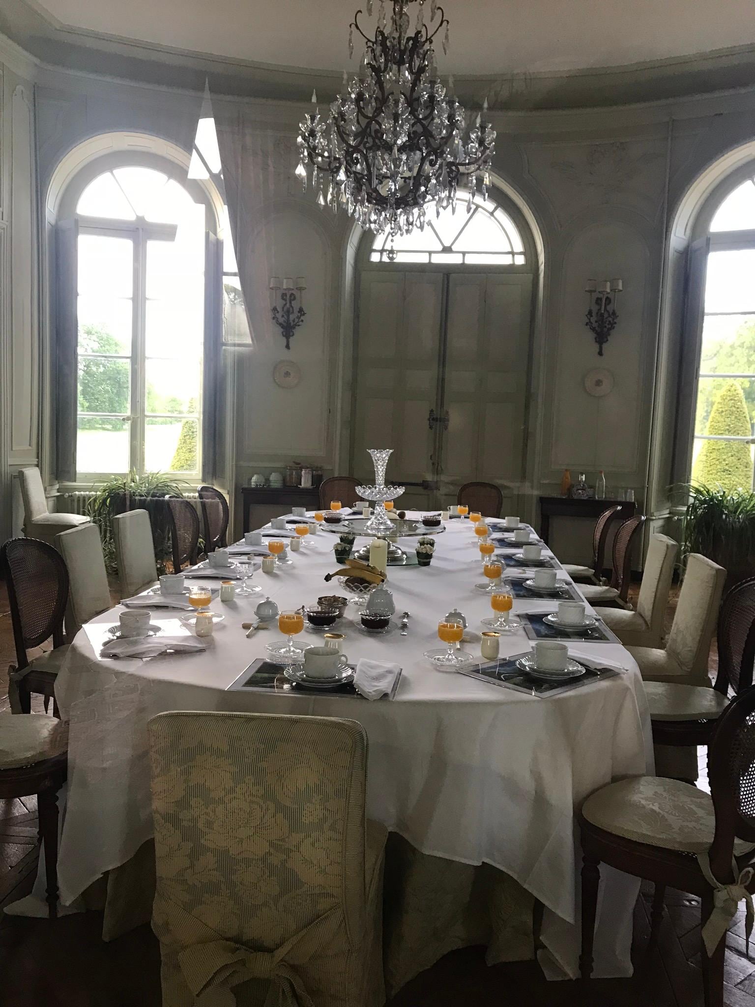 Beautiful area and elegant surroundings. The Château has been in the family for generations, and the new generation is now in charge, with background assistance from their elders. They are very thoughtful and attentive. Dinner at the farmhouse was fun— a chance to chat with staff and other guests from many countries. Breakfast was self-service in the elegant dining room, the center of the home. We stayed between visits to Mont Saint-Michel and the Loire Valley chateaus.