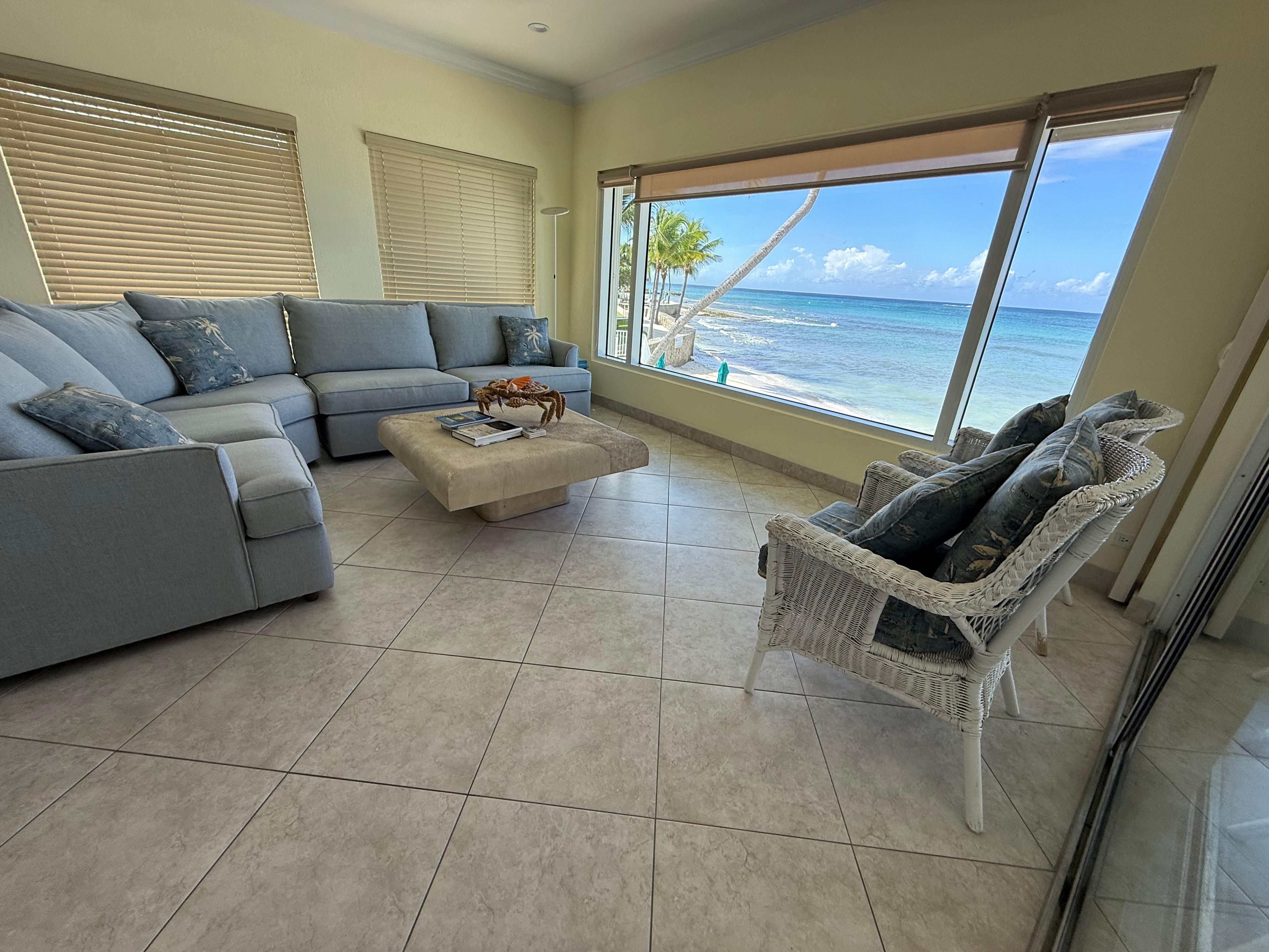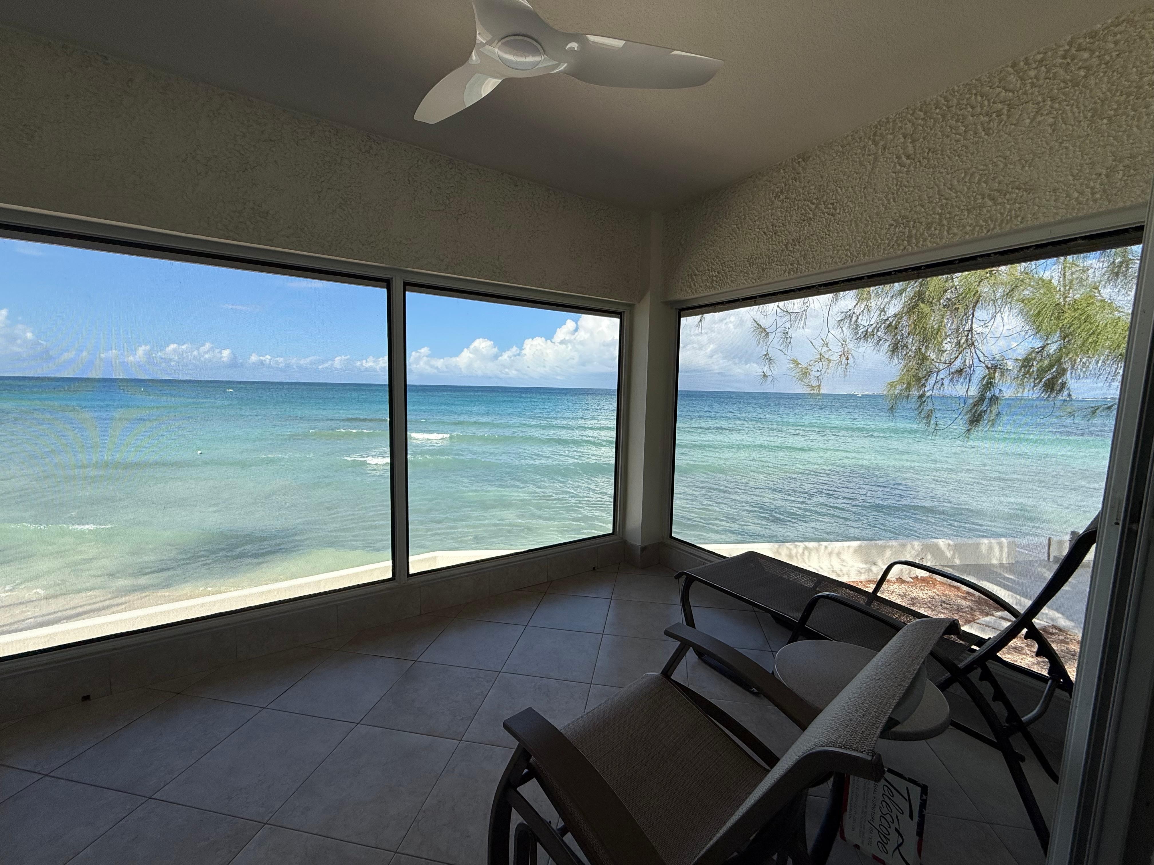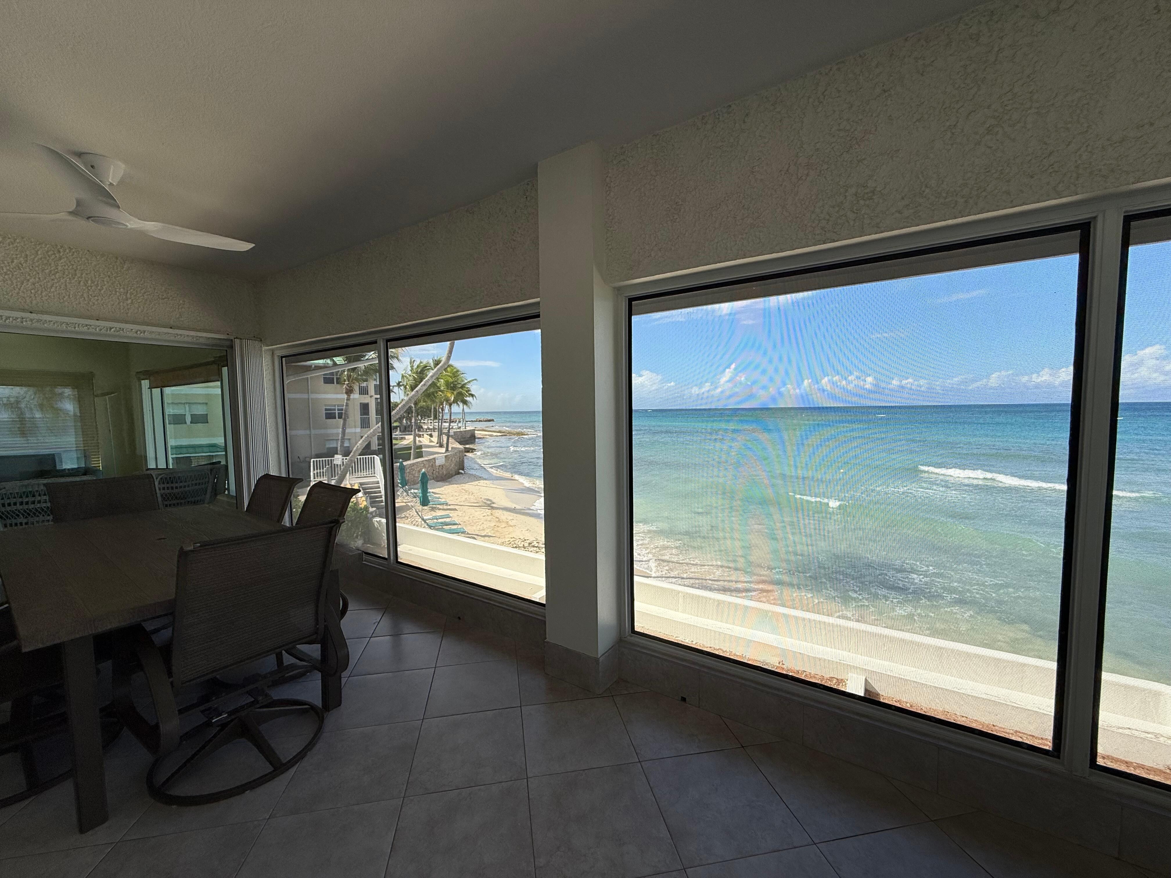 Step through any of the oversized sliding glass doors—from the living room, den, or master—and you’re on the screened-in lanai. This is your private perch above the sea, where mornings begin with coffee and sea breezes and evenings wind down with sunset cocktails and the gentle crash of waves. With unobstructed sightlines up the entire stretch of Seven Mile Beach, it’s the kind of vantage point that makes you linger a little longer... then a little more.