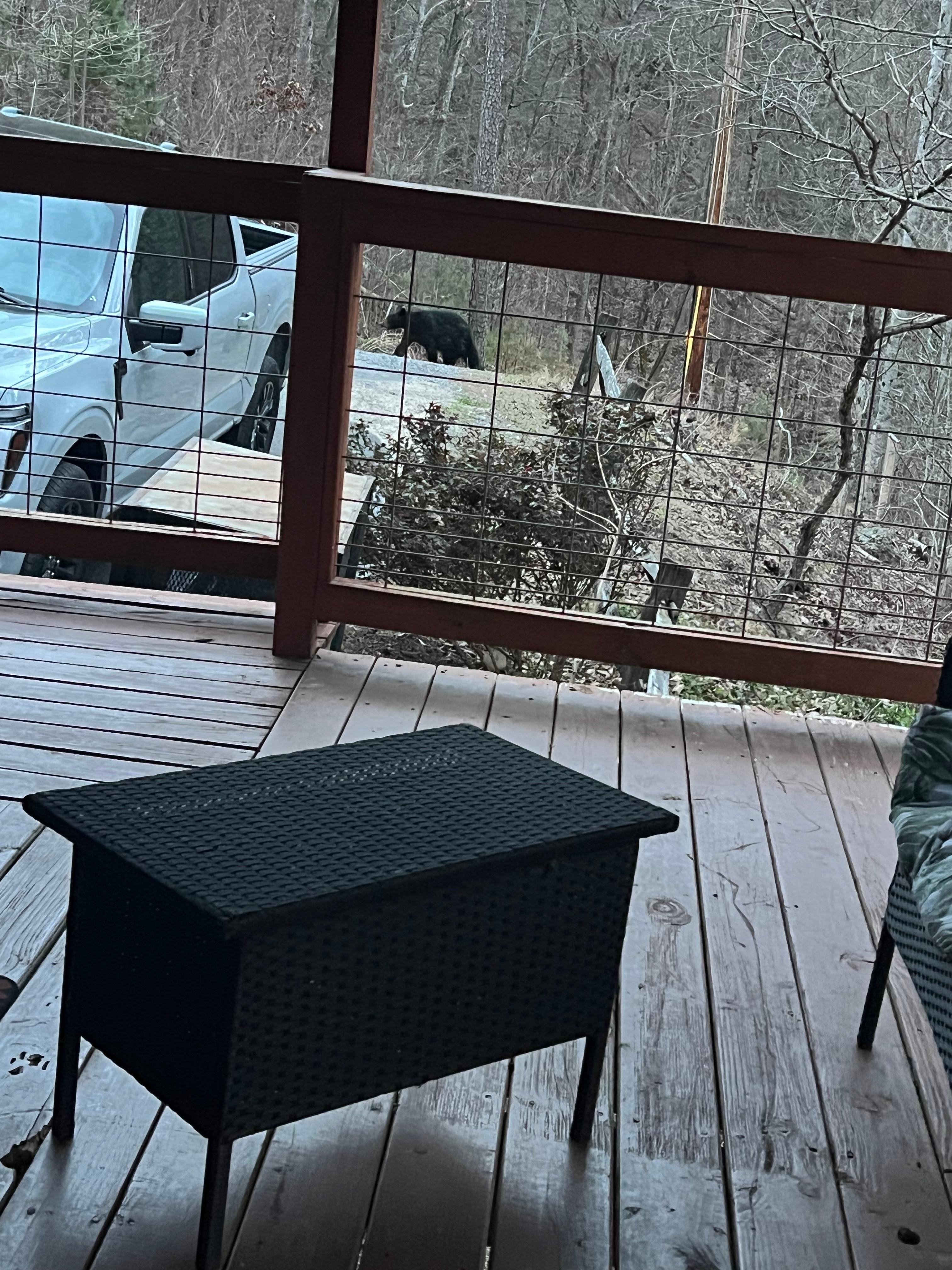 This is a wonderful location and property secluded in the hills close to Dollywood. Centrally located to all that the great Smokey Mountains have to offer. A bear stopped by to say hello (from a very safe distance). After saying hello, we were only able to capture a picture as the bear walked away going behind a large rock. Hot tub was always a perfect way to end each day.