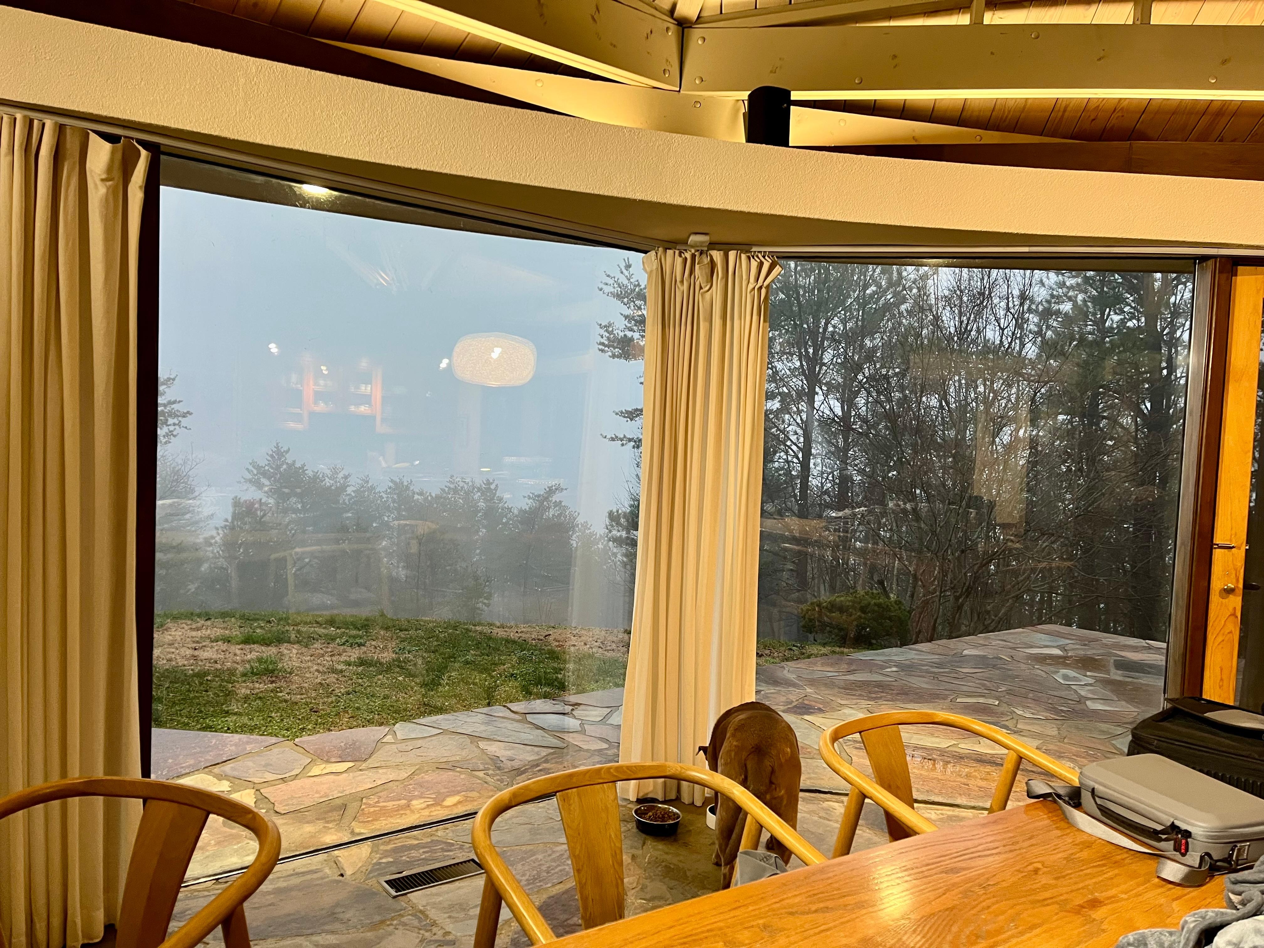 We chose this location for our wedding week/honeymoon at the end of January. It was everything we had dreamed it would be! The views are unparalleled and viewable from almost every room of the house. The whole place was immaculate. The owner, Emma, responded to all questions quickly. Communication was top notch throughout.We ended up snowbound for several days and I can’t imagine a more perfect or beautiful place to be “stuck”! Thankfully we came prepared with plenty of food, water, and firewood…there were no supply runs possible once the snow started. Being able to bring our dog was a must, and we were thrilled to find a “cuddler” dog bed when we arrived.…nice touch! The cabin is well stocked with cookware, tableware, small appliances, linens toiletries, and a few basic pantry staples. The beds were huge, comfortable, and felt luxurious. The steam shower in the master suite is TO DIE FOR! The unique architecture is fascinating and functional. The massive fireplace is the star of the design, and it is a beauty. I’d recommend bringing hard-soled slippers, though. The stone floors, while absolutely beautiful, can be rough on tender feet. Don’t miss the catwalk that runs across the roof…breathtaking views!Our only complaint: the screen of the projection television can be hard to see in daylight. Luckily, television was not a priority on our honeymoon! Assuming it is financially feasible, we hope to return to this cabin every year for our anniversary. 100% recommended!