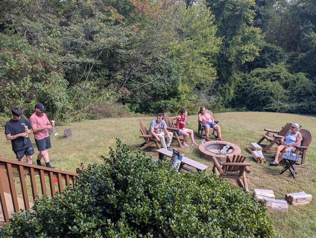 Other property highlights include a private driveway, large front yard, outdoor entertainment area with a fire pit with family-style seating.