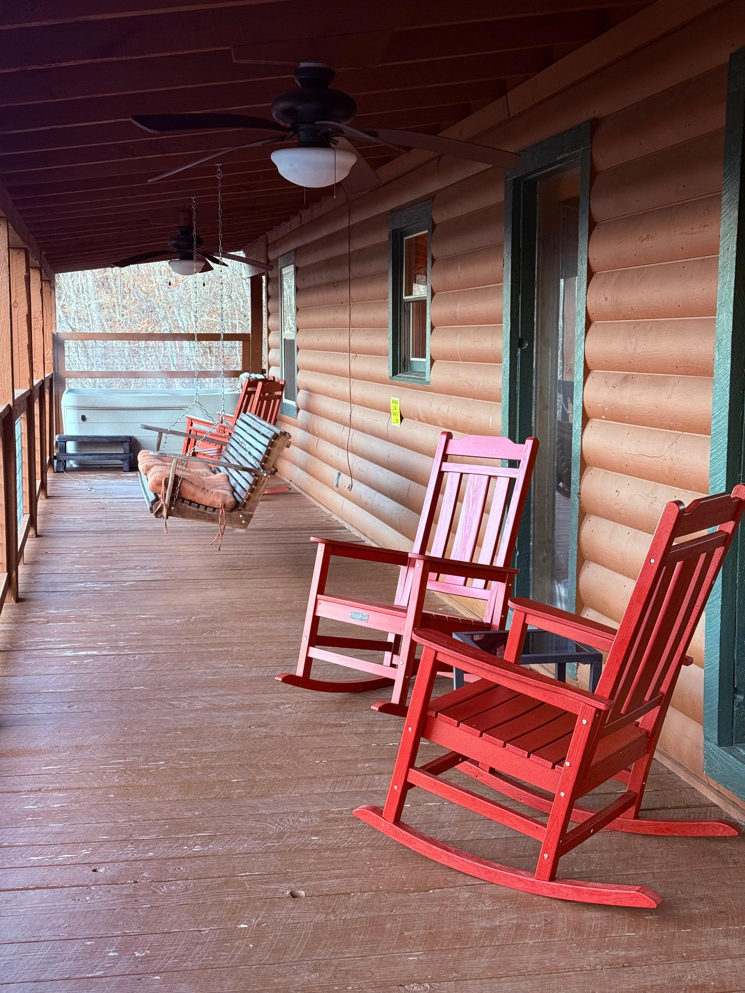 ✔ Covered Decks with Rocking Chairs & Swinging Benches