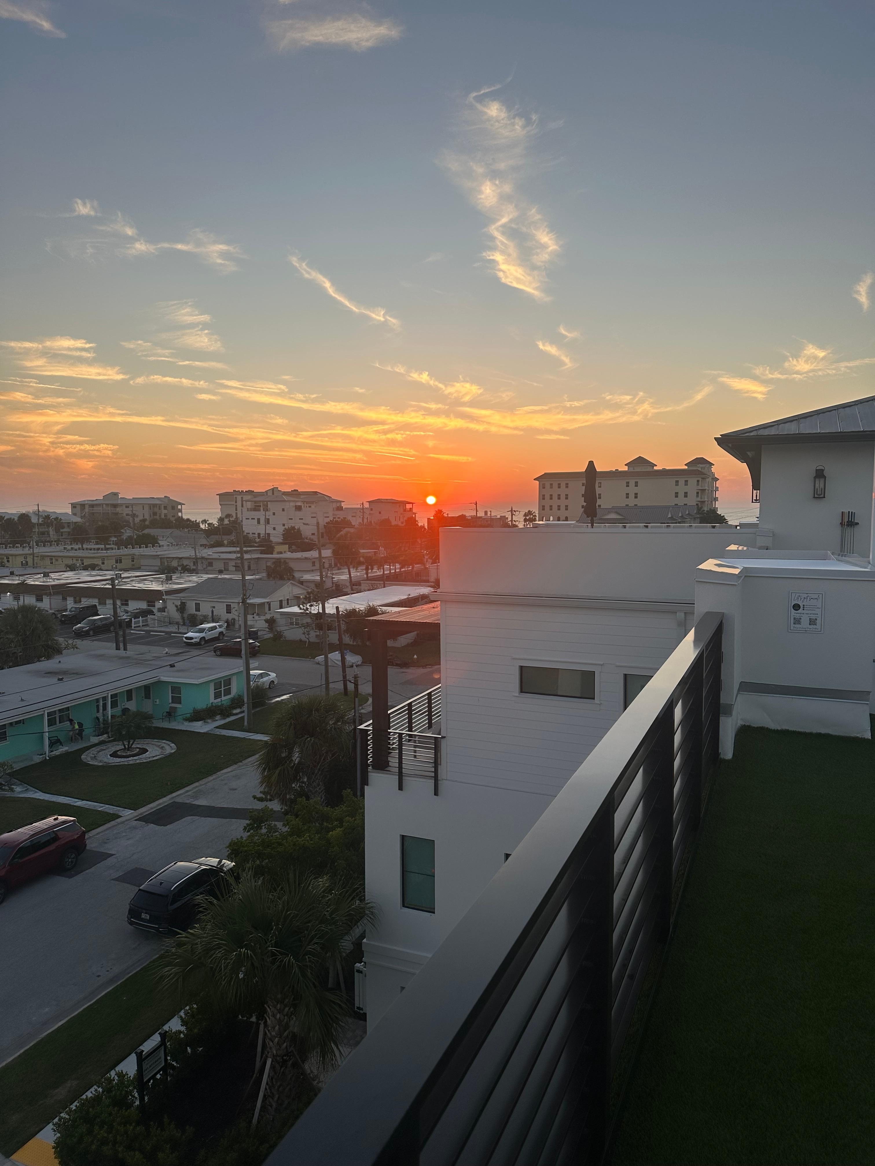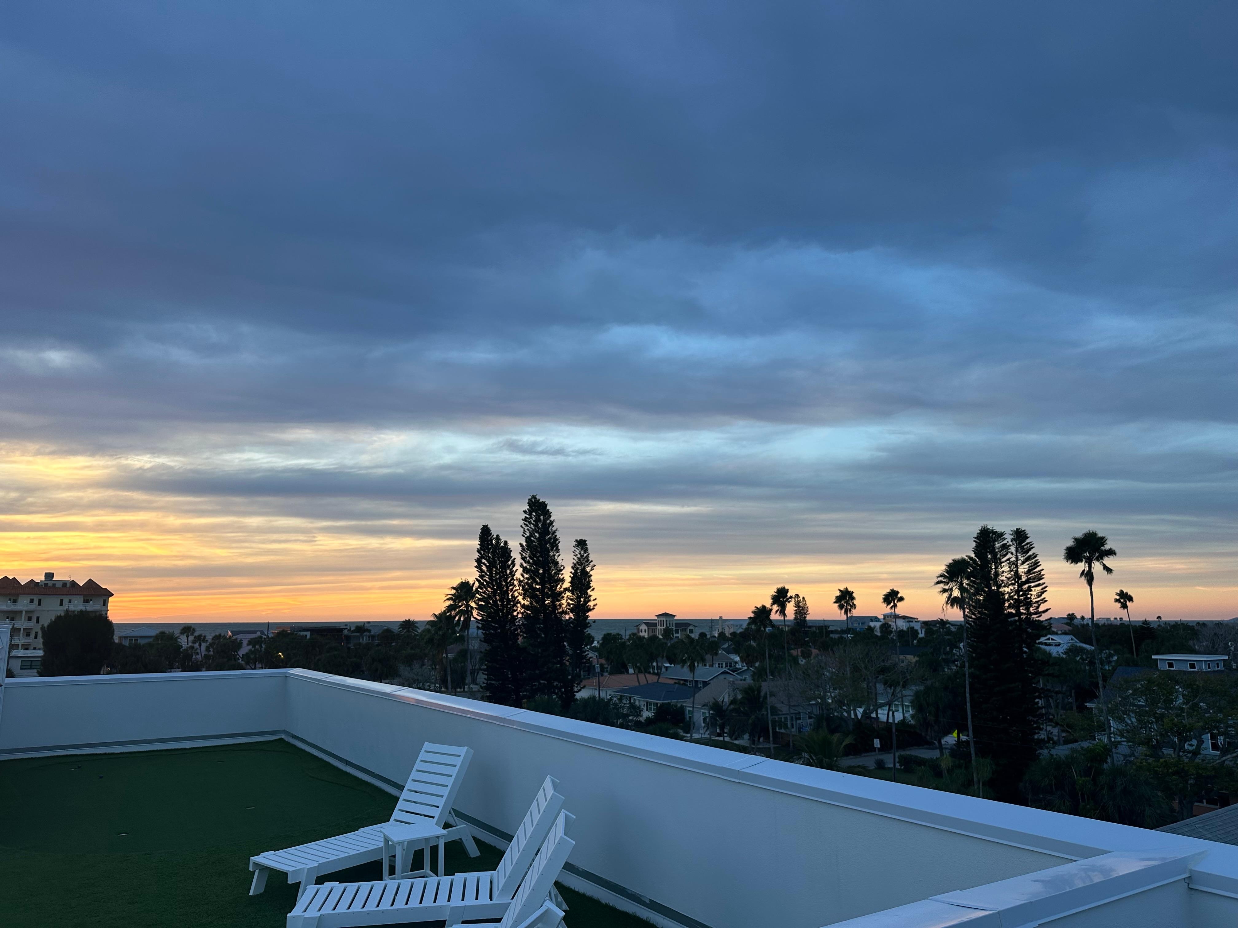 The Rooftop Deck: The rooftop deck is easily accessed via interior stairs or elevator. It's perfect for enjoying sunrise over Clearwater Bay and downtown, or sunset over the Gulf of Mexico. This oversized and spacious elevated living space has a dry bar with beverage refrigerator and ice maker, TV, seating, dining, bar seating along the railing system, games and more! You'll spend a lot of time up here, so be sure to grab a book, a coffee or cocktail, and enjoy the sea breeze and Florida sun from this amazing elevated outdoor living space that overlooks all of Clearwater Beach.