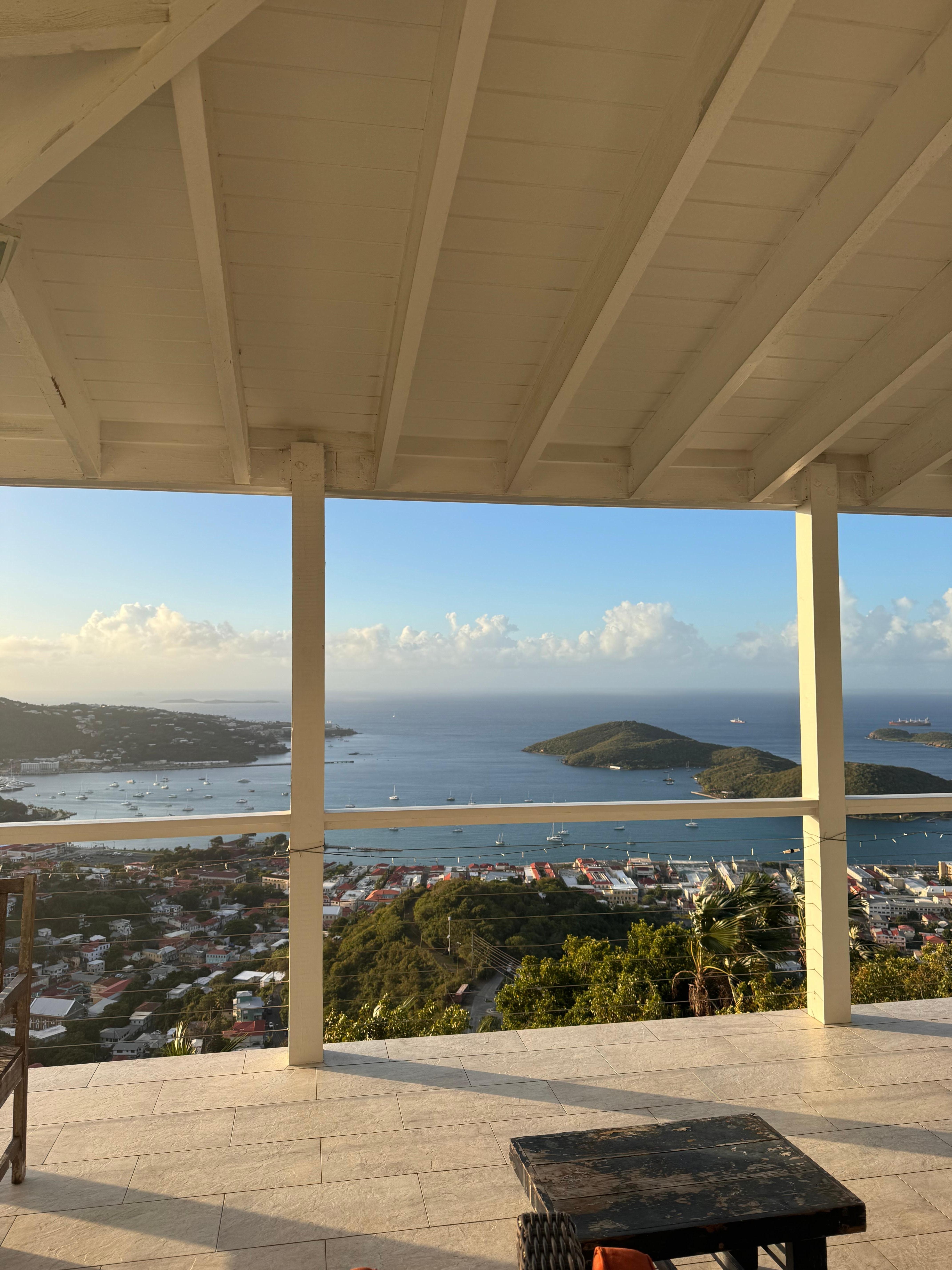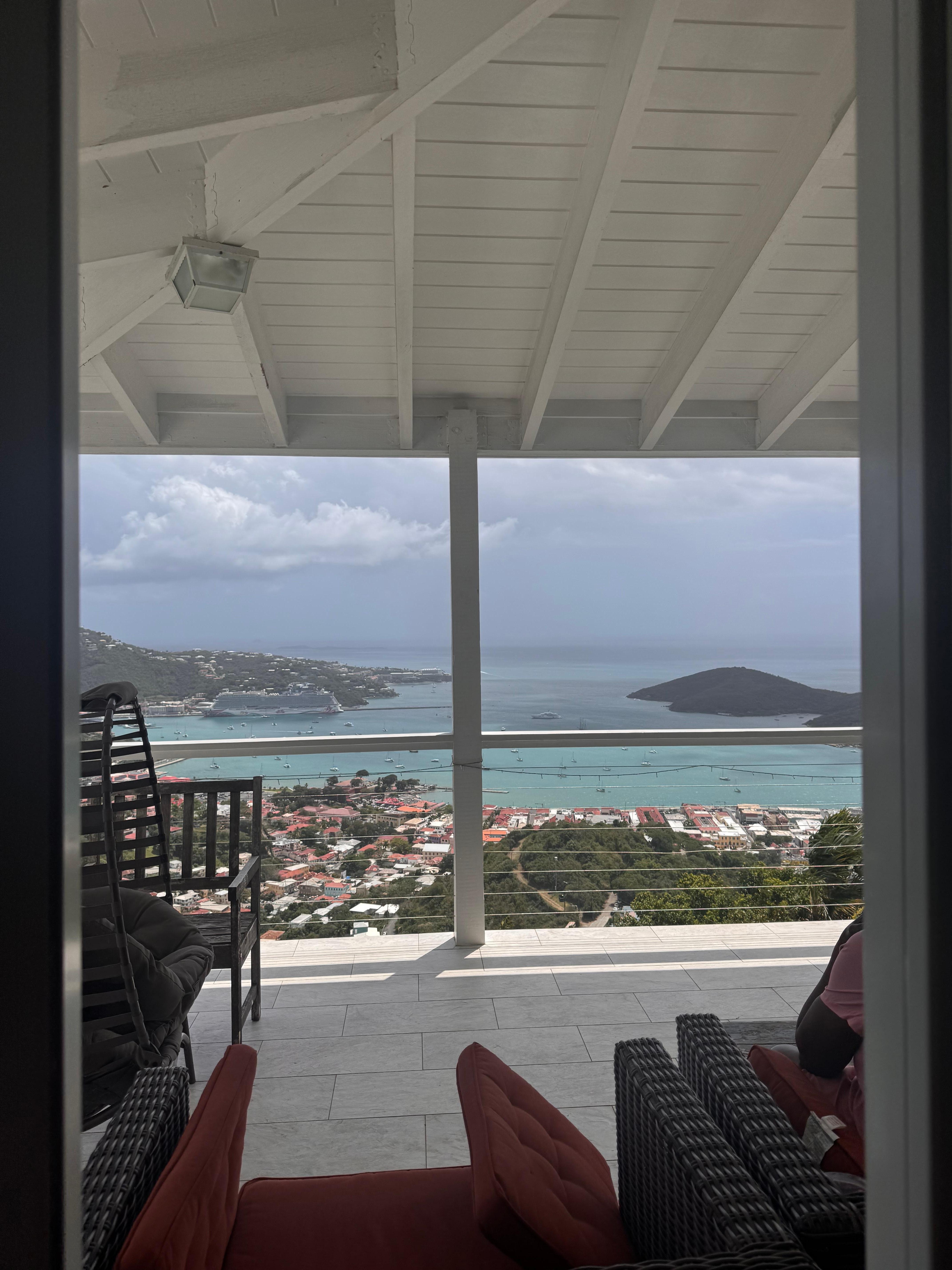This is a property with absolutely UNPARALLELED panoramic harbor and island views--read our reviews that agree with us. This recently renovated, simply and tastefully furnished villa located on a breezy gated acre of land overlooking Charlotte Amalie Harbor will amaze you! It features a spectacular, panoramic view, large, comfortable living spaces that include three air conditioned bedrooms, three full baths, a full designer kitchen, propane grill, an intimate plunge pool, off street parking and a host of other amenities. Internet is available (not guaranteed). **Note that due to island conditions, there may be intermittent power outages.** The road to the property is STEEP--if renting a vehicle, a 4-wheel drive is VERY STRONGLY recommended. A rental car is especially recommended since we are NOT a walking community, as is true in much of St. Thomas. Here you can take in the view up over the city while relaxing and watching the cruise ships come in to both cruise ports, and seeing the sea planes take off and land!