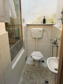 We were a little bit scared about the previous reviews when we booked this room, but honestly was not that bad. The only real inconvenient thing  was the bathroom, if I can call it this...this was all half meter,maybe less,all together toilet,shower and sink...Certainly not recommended for pregnant women or fat people!!!! (I have 65 kg and was very hard to rich the shower and toilet from the stairs!!!) The room was good, the bed comfortable, not perfectly clean, but not dirty. The Ac didn't work but we didn't need it because it was hot enough in the room.There is no TV in the room. They offer bath amenities, we had a room on the ground floor and we can hear everything from outside,but if you are tired is ok :). The property is near to the beach (5 minutes walking) and 20 minutes walking until Jaffa Old City.Very near to the bus station as well, if you print before a google map with the hotel,you will reach it very easy.Make sure that you save the address and have a city map.For the money that we paid I believe was not that bad.Israel is an expensive country and the good things at this guest house were that we were near the beach and center, we had a lot of restaurants near by, and we had in the room separate  bathroom and a clean bed where to sleep.