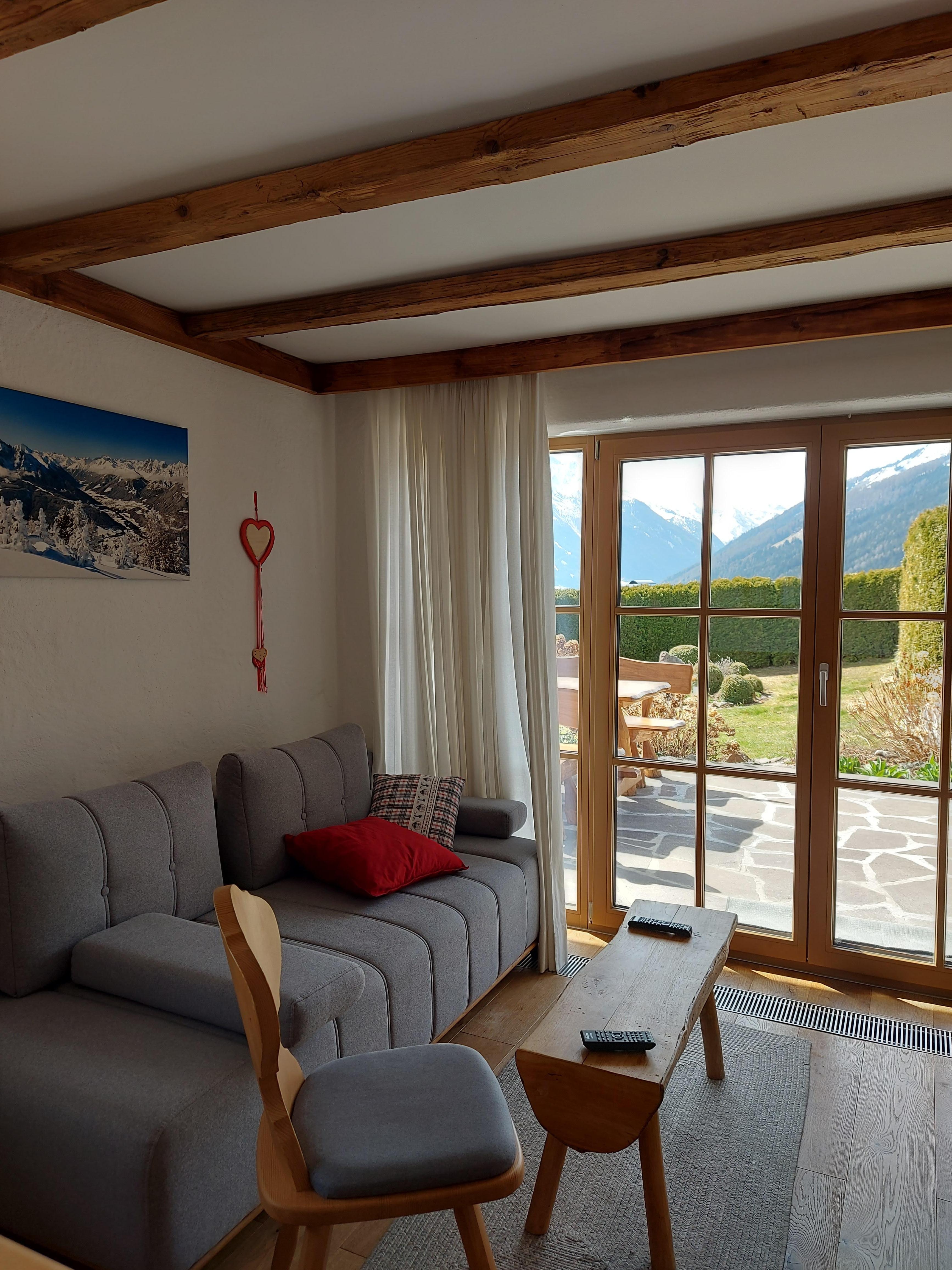 The Apart-Chalet GletscherGlück is 104 m² in size and enchants with its unique panoramic view of the entire Stubai Valley. There are 3 spacious bedrooms with large double beds, WiFi flat TV, a desk, seating and a sofa bed. One of the rooms has its own bathroom.