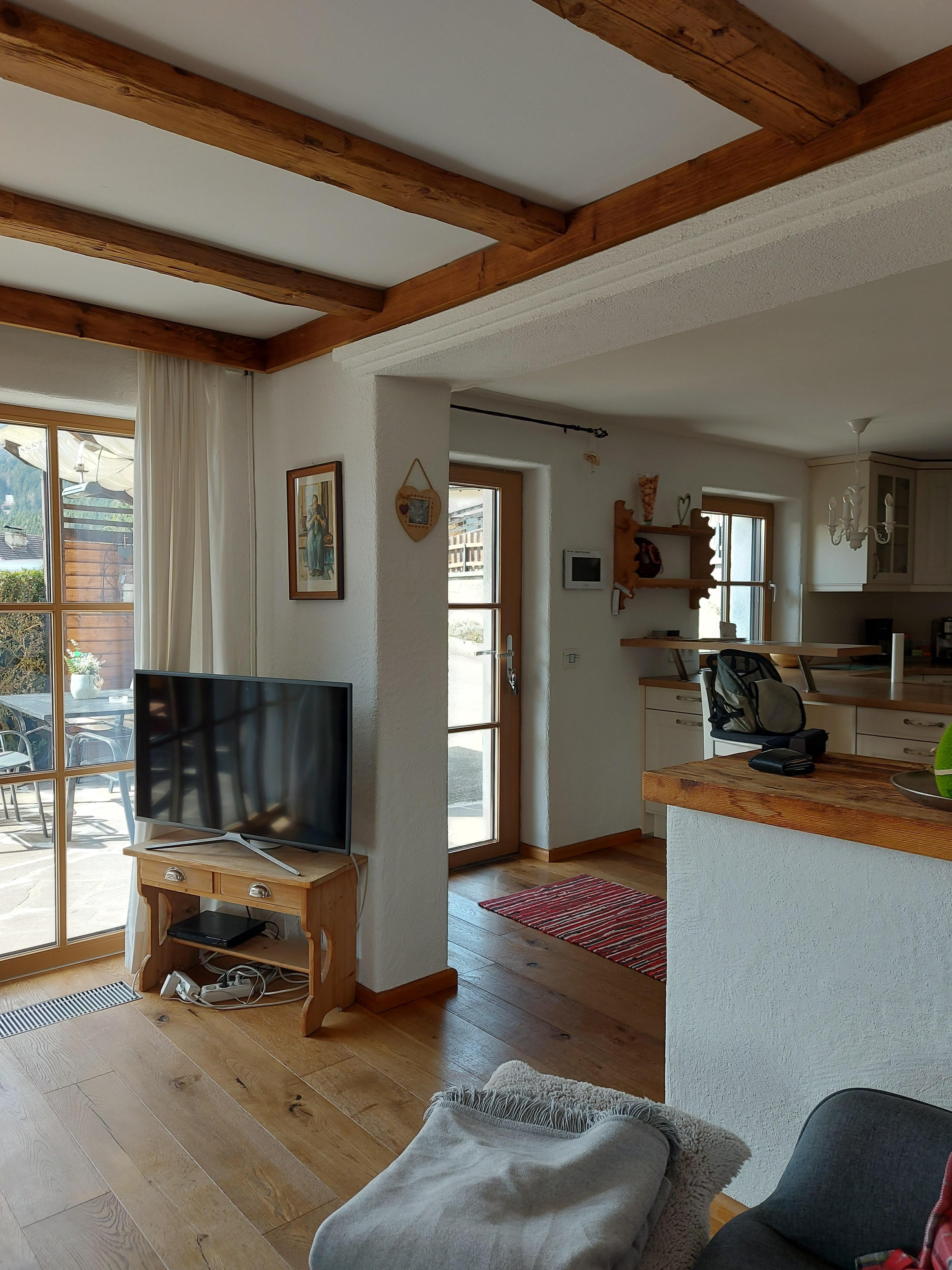 In the sun-drenched dining and living area you can enjoy the wonderful ambience with the Smart Home living system, a romantic tiled stove and a WiFi flat TV.