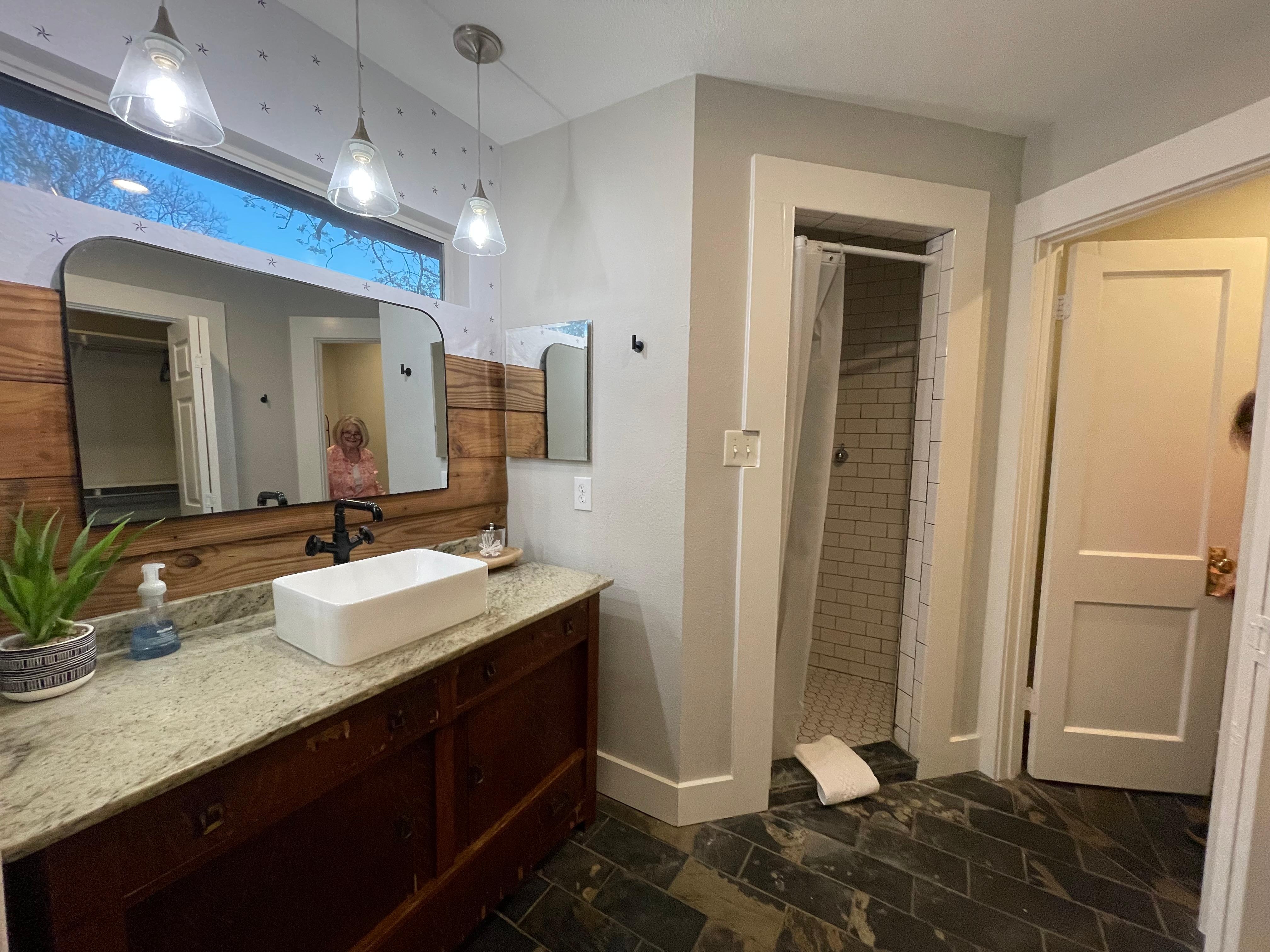 My parents, husband and adult daughters stayed here for my nieces wedding at Balmorhea. The property is ideally located and the renovations to the house are lovely. The king sized room is incredible! This was great for my disabled mother who needs space to move around with her walker. (Note here: there are front steps to negotiate, as the house is originally built in 1930, so a little tricky on the steps but we managed). The owner was great to communicate with - very timely with communication and always positive and helpful. I especially appreciated the small touches - the record player with the lovely record to play - we listened all morning Saturday - and just the small courtesies. It felt like staying at a friends house. Very welcoming!