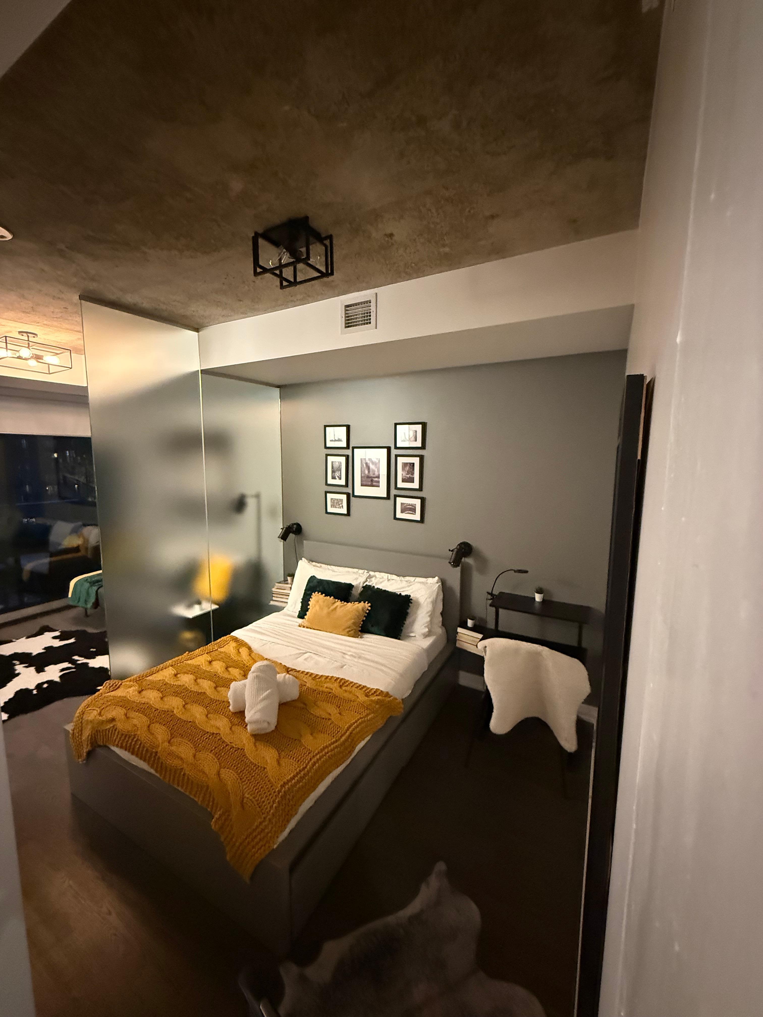 Welcome to luxury urban oasis in the heart of the most popular Toronto's most popular neighborhood(King W and Bathurst). This modern 1 bedroom condo is fully equipped with everything you need for an enjoyable and comfortable stay, featuring a fully equipped ultra-modern kitchen, a stylish and modern living & dining space, a luxurious bedroom with workspace, and a Zen like bathroom. Step onto the chic heated balcony for a touch of elegance. Your perfect home away from home awaits, ensuring an enjoyable and comfortable stay in the vibrant city.