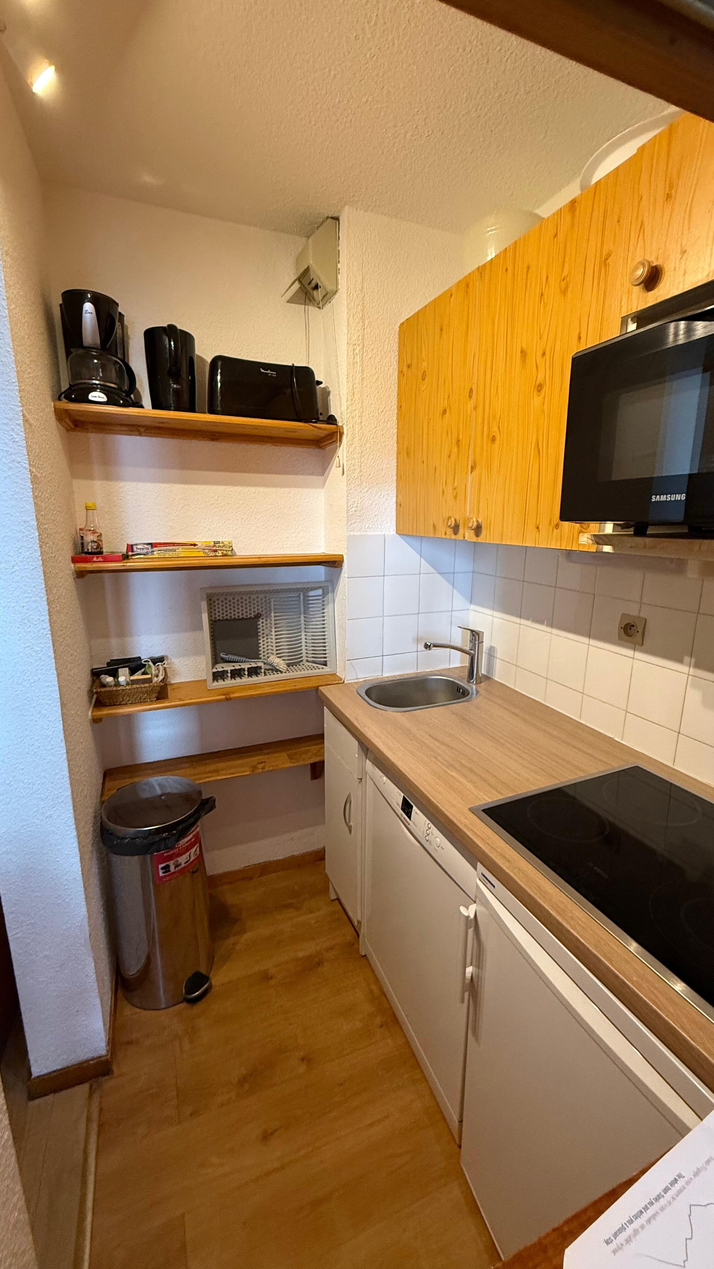 Equipped with dishwasher, ceramic hob, fridge, microwave oven with grill