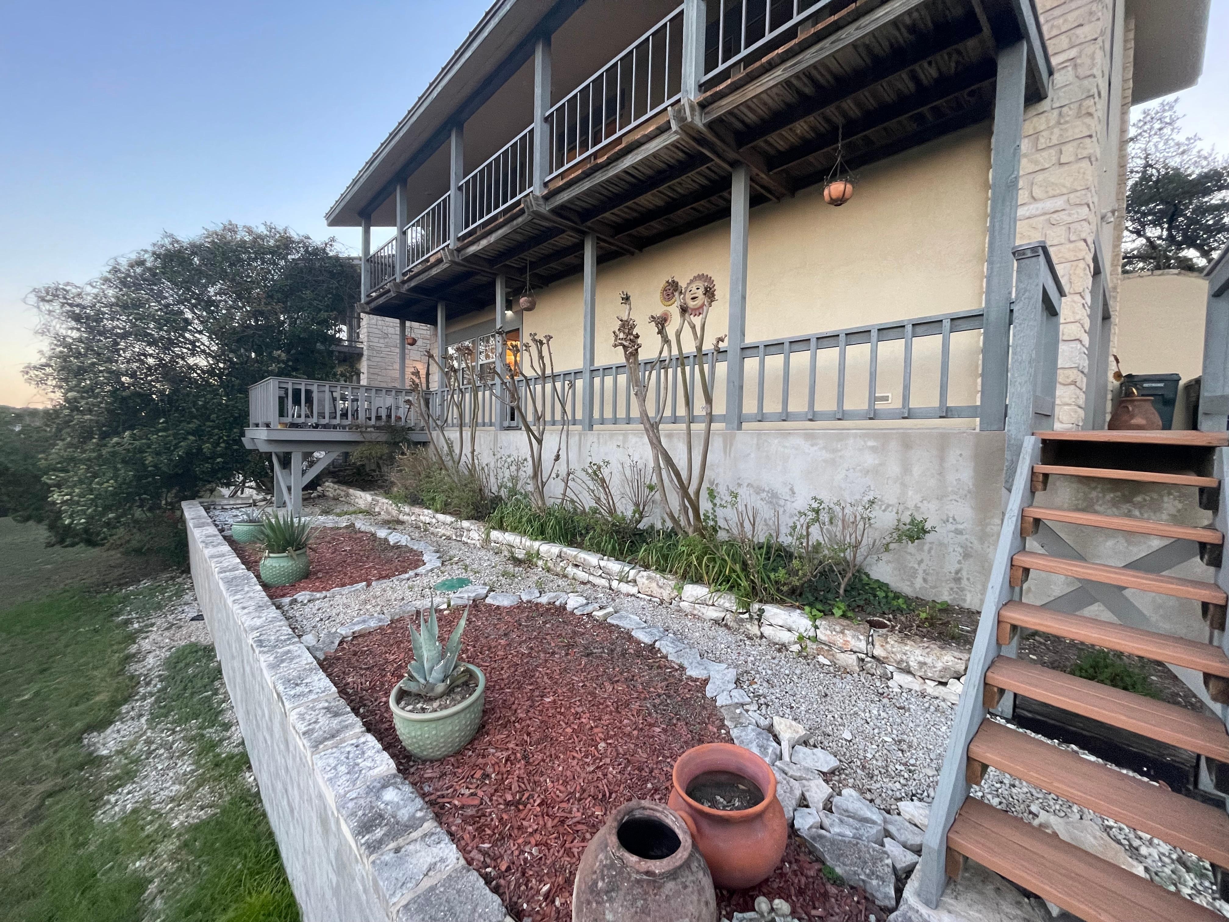 Welcome to the White Buffalo - Room With a View, perched majestically on the apex of the hills overlooking the serene Blanco River Valley in Wimberley, Texas. This enchanting vacation rental is a haven for romantic getaways, offering breathtaking vistas that stretch as far as the eye can see. As you immerse yourself in the tranquility of your surroundings, you may wonder about the caretakers' home located next door. Rest assured, it in no way detracts from the privacy and seclusion you cherish.